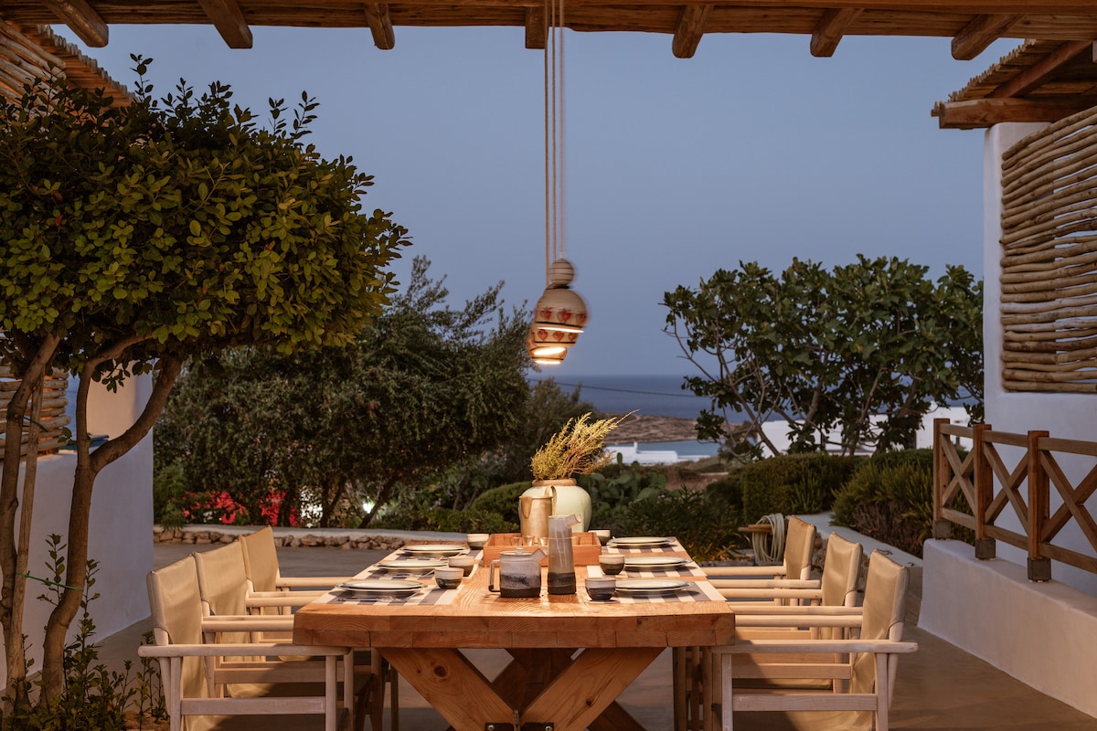 Kiriaki house is located in the most quiet part of Langada, surrounded by native plants and dominated by a big Oak-tree. It’s a typical cycladic house, built with local stone and inspired by the layout of an orthodox church. It has an open plan with a double bed, a living area with a double sofa-bed, a fully equipped kitchen with the dining table and a bathroom. The outdoor space comprises a private patio with a stone table, where to Enjoy the amazing Aegean sunset with a stunning view.