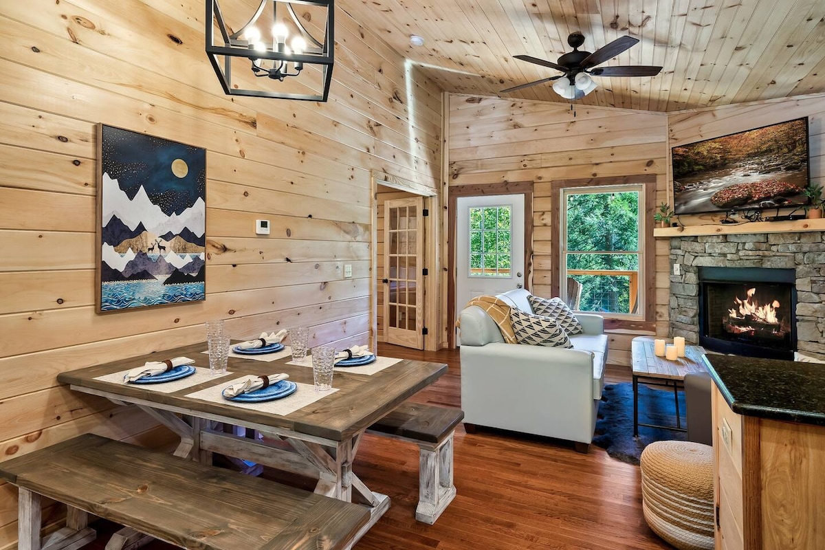 Bienvenido a Shady Mountain Hideaway, tu refugio sereno en el corazón de las Smokies. Despiértate con impresionantes vistas a la montaña, disfruta de un refrescante baño en tu piscina cubierta climatizada privada y relájate en el jacuzzi al aire libre. Mientras se pone el sol, reúnete alrededor de la chimenea para ver s'mores, historias y contemplar las estrellas. En el interior, una acogedora sala de estar y una cocina moderna totalmente equipada ofrecen el entorno perfecto para la comodidad, la conexión y la relajación sin esfuerzo.