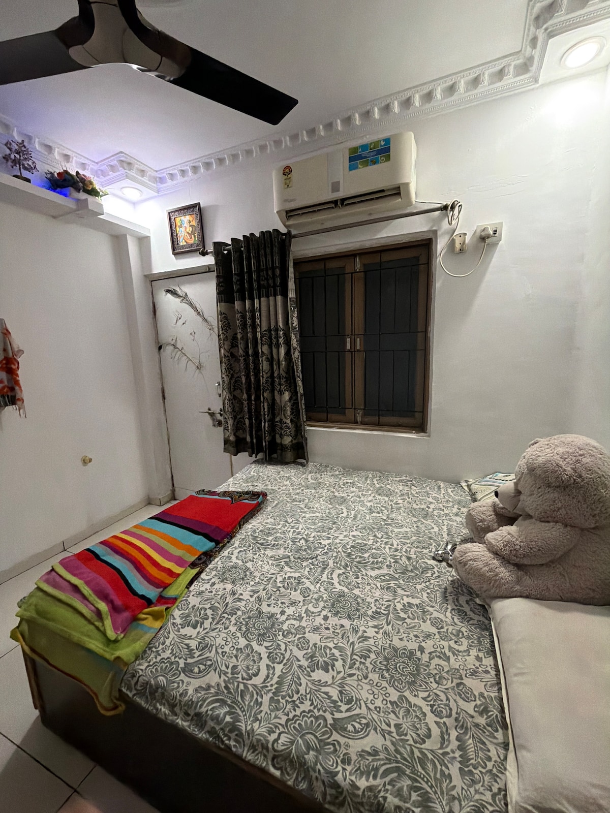 Nuestra casa es un espacio acogedor perfecto solo para parejas casadas o familias pequeñas. Está equipado con servicios básicos: wifi, duchas de agua caliente, utensilios de cocina, estufa, lavadora y armarios. Con cómodos sofás en la sala de estar y una cama tamaño queen para dormir, seguramente te sentirás descansado y en tu hogar lejos de casa. Situado en Pratapnagar, estarás en una parte más tranquila de Vadodara, un barrio seguro que está a solo 15-20 minutos del centro de la ciudad, el aeropuerto y la estación de tren.
