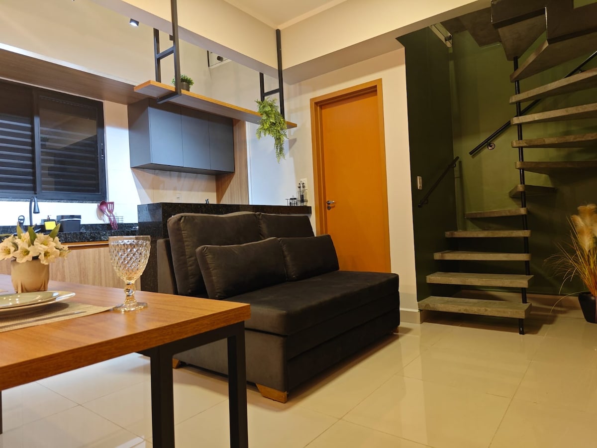 Loft Estiloso no Blue III • Cama King + Sofá-Cama