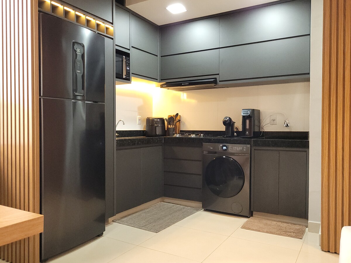 Apartamento moderno en Residencial Vitória, Sector Universitario – Anápolis. Tiene capacidad para 4 personas, con wifi, aire acondicionado, TV inteligente, cocina completa y ropa de cama/baño, lavadora y secadora, y una decoración moderna. El condominio tiene estacionamiento con garaje privado, ascensor y fácil acceso a la Av. Universidad, cerca de tiendas, hospitales y universidades. Ideal para familias, ejecutivos, estudiantes y turismo. Todo está diseñado para que tu estancia sea ligera, práctica y agradable
