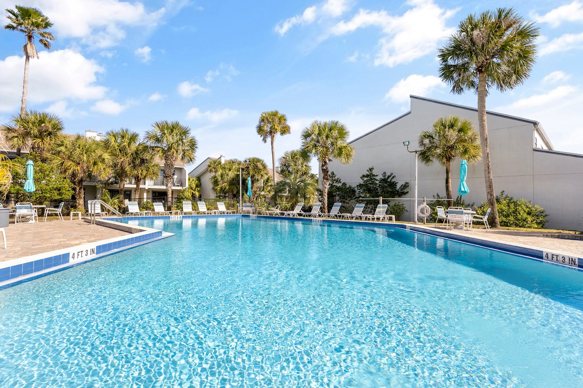 Hermosas vistas al mar y a la piscina de St. Augustine Beach desde este apartamento de estilo adosado 2/2,5, a pocos pasos de la playa. Ven a disfrutar de todo lo que ofrece esta vibrante ciudad. 2 dormitorios tranquilos y baños arriba. 2 balcones privados. En la planta baja hay una cocina completa, comedor para 6 personas (o espacio de trabajo bien iluminado), medio baño, sala de estar con TV nueva de 65 pulgadas, a 10 minutos del centro histórico. Comunidad de resort familiar con piscinas, tenis, pickleball y canchas de bochas. Se proporcionan sillas de playa y toallas.