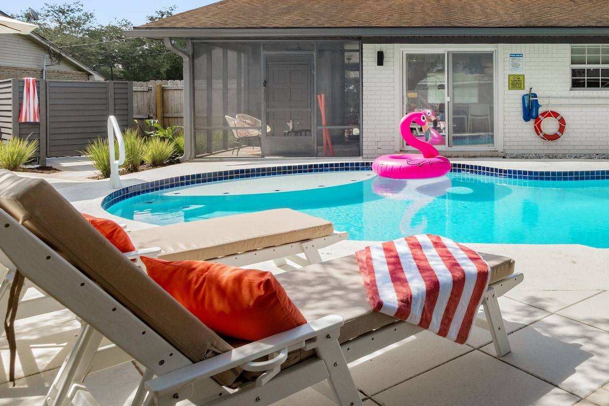 Caminata a la playa•Jacuzzi•Patio trasero grande•Juegos al aire libre