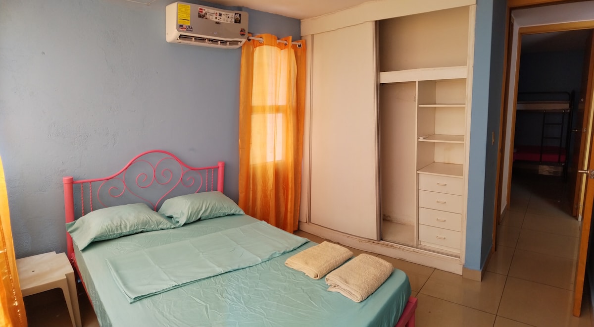 • Apartamento amplio y totalmente amoblado a solo 4 minutos del Aeropuerto de Tocumen, ideal para familias o grupos de hasta 6 personas. • Cuenta con 3 recámaras, 2 baños, aire acondicionado y TV en todas las habitaciones y en la sala, Wi-Fi, agua caliente y cocina totalmente equipada. • Incluye piscina compartida, estacionamiento privado y seguridad 24/7. Espacio cómodo, tranquilo y entregado impecablemente limpio para una estadía de calidad.