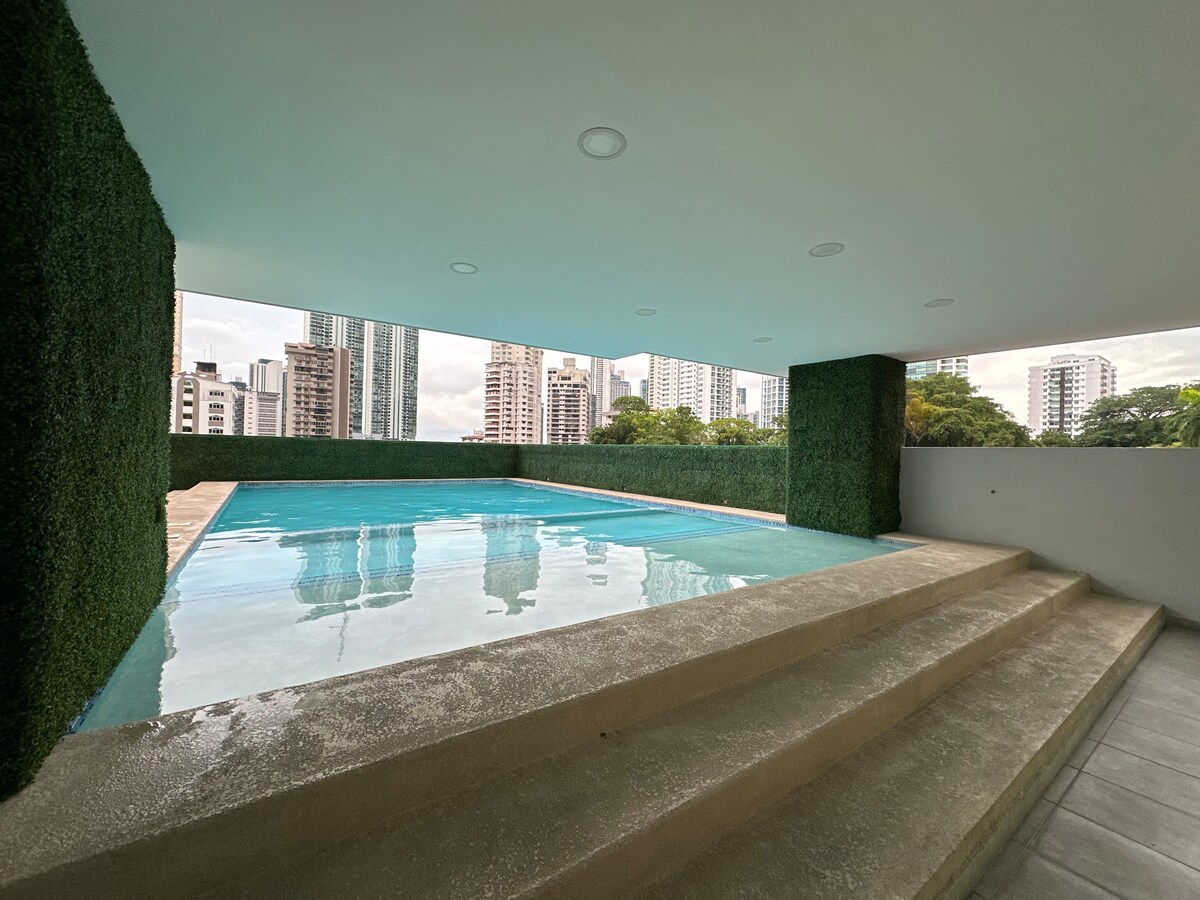 Hermoso departamento ubicado en el piso 54 del más lujoso edificio de Panama. Areas diseñadas por el Diseñador Philip Stark. Tiene 134 metros, está completamente amoblado, cuenta con un dormitorio, walking closet, un baño completo, sala comedor y cocina abiertos, medio baño social, terraza, cuarto de lavado. El edificio es un lugar único, con áreas comunales especiales y lujosas; 2 elegantes restaurantes; 2 piscinas; Gym; SPA; 2 canchas de squash; salsa de póker, lobby con mesa de billa, etc.