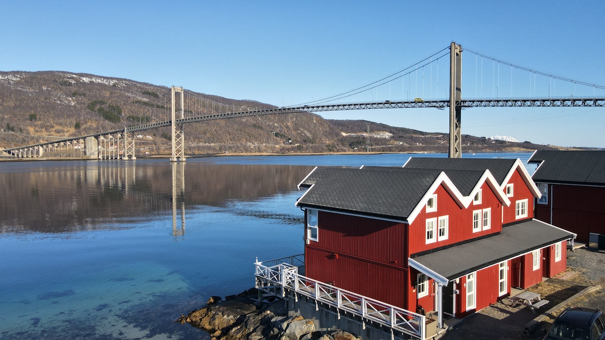 Ubicación rural, a 50 m del mar/muelle. Festivo, estilo retro. Bien equipado, baño con calefacción por suelo radiante. 2 camas en el loft (escaleras empinadas), 1 sofá cama en el primer piso. Ropa de cama/toallas incluidas A 45 minutos en auto de Harstad/aeropuerto. Minimarket/gasolinera cercana. Ubicación entre Tromsø y Lofoten Rica vida silvestre en la zona, oportunidades para ver alces, nutrias, águilas de cola blanca, ballenas, renos, etc. Se puede utilizar el muelle, posibilidad de usar kayaks (si el clima lo permite). Prohibido fumar/hacer fiestas