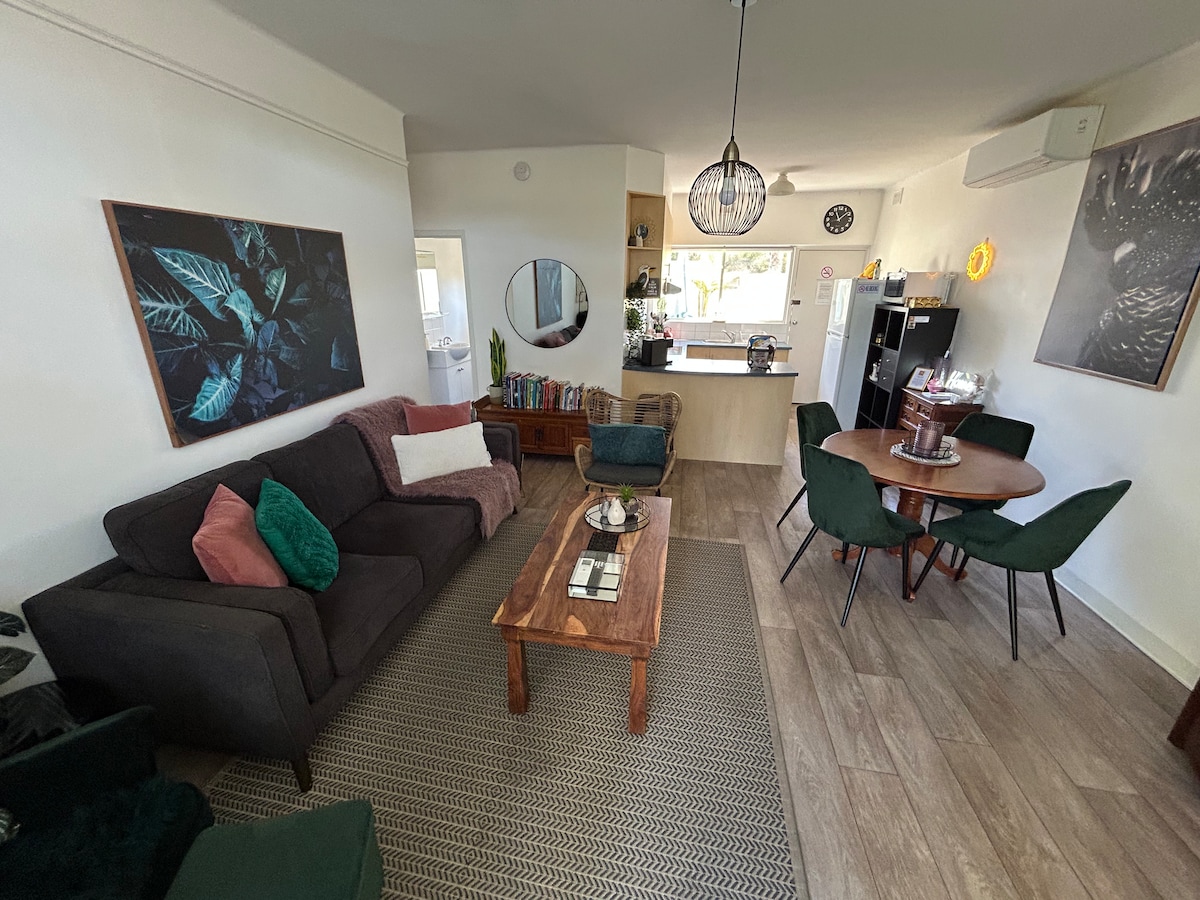 A lovely fully renovated 1950's house in the heart of Angaston. Experience the Barossa like a local. A short walk to the main street and less than 10 minutes drive to Tanunda. Drop into a winery, enjoy a balloon ride across the Barossa or just kick back enjoy the pace of life. Please note a booking for two guests will allow access to one bedroom in the house. If you require both bedrooms you must book for a minimum of three guests. All guests must be over 18.
