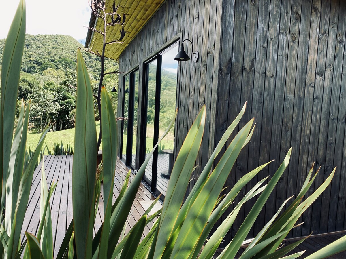 Relájese en este espacio lleno de estilo, con check-in y out flexible, mucha comodidad, aire acondicionado q/f, estufa de leña con función de chimenea, amplio baño con 2 duchas y ducha higiénica, con todos los utensilios de cocina, TV 32 con TV box, pájaros y mucho verde, a 800 metros de altitud. ¡Donde se pueden visitar lugares de interés aprovechando todo lo que ofrece el entorno! Se encuentra a 8 minutos del centro de Rancho Queimado, pero aislado, en la tranquilidad que solo un espacio como este puede ofrecer.