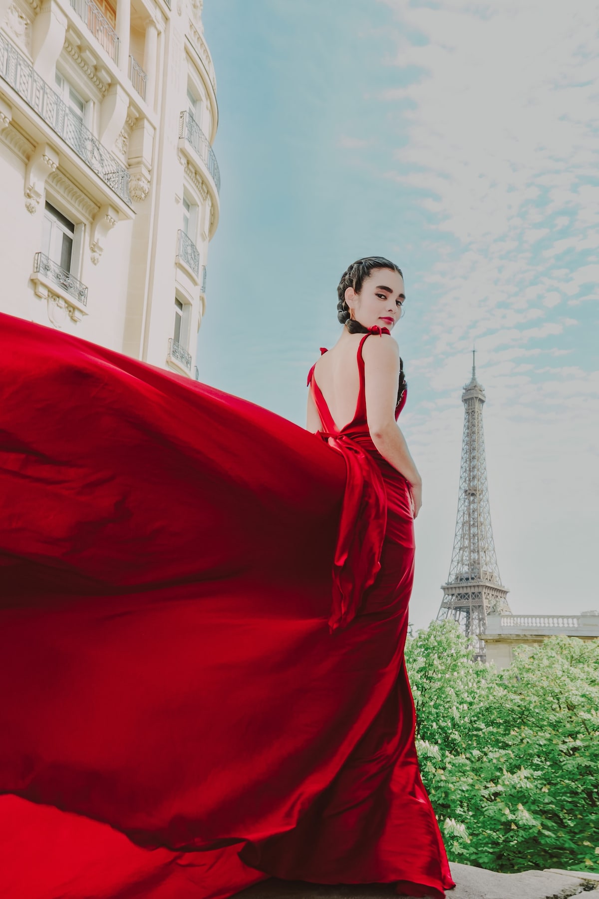 Crea imágenes elegantes e inolvidables en París durante una sesión de fotos con vestido volador en lugares emblemáticos. Te guiaré en las poses y los movimientos, así que no se necesita experiencia.