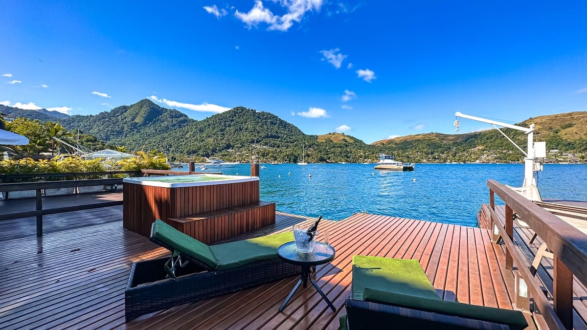 ¡🏡✨🏝️Bienvenido a su refugio paradisíaco en Angra dos Reis! Nuestra casa de lujo con vistas panorámicas al mar, piscina, barbacoa, sauna y acceso a una playa privada, combina un confort sofisticado, el contacto con una naturaleza impresionante y servicios personalizados para ofrecer una experiencia inolvidable. Todas las habitaciones tienen vistas al mar, aire acondicionado, sala de estar con Smart TV, wifi, comedor, cocina, zona gourmet completa y cubierta para barcos de hasta 100 pies.