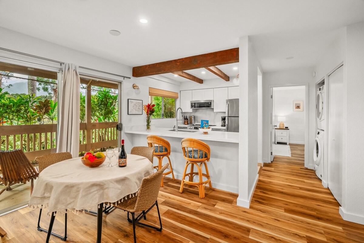 ¡🌺 Bienvenido a su sereno Kauai Oasis repleto de comodidades! Una casa☀️ llena de luz que combina el confort moderno con la belleza natural de Kauai. 🌿 Cuidadosamente seleccionado con arte alegre y muebles de alta gama. ✅ NUEVO rediseño con estilo ✅ NUEVO Aire acondicionado en todas las habitaciones ✅ A 8 minutos de Hanalei ✅ Cama King ✅ Cómodo sofá cama completo (capacidad para 1-2 personas) ✅ Cocina totalmente equipada ✅ Lavadora y secadora en la vivienda Wifi ✅ rápido + espacio de trabajo ✅ Playa y equipo de snorkel ✅ Televisores inteligentes ✅ Acceso a piscina, bañera de hidromasaje y barbacoa Aparcamiento ✅ gratuito y reservado