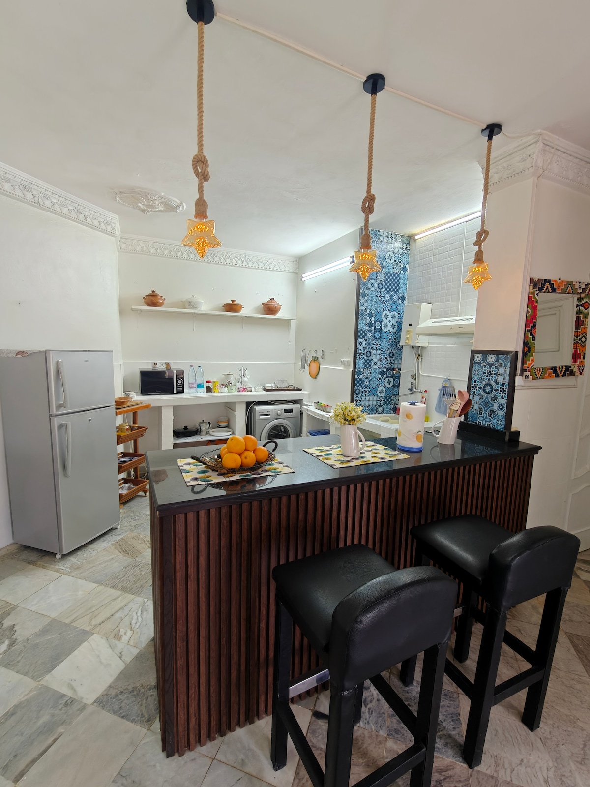 un apartamento T2 bien equipado en una ciudad residencial a 20 minutos de la playa a 15 minutos del centro de la ciudad y a 20 minutos del aeropuerto de Annaba el apartamento está bien asegurado en un edificio cerrado con llave a 5 minutos del alojamiento encontrará un mercado de comercios y restaurantes siempre será bienvenido en casa de Zakaria y Younes estaremos a su disposición.