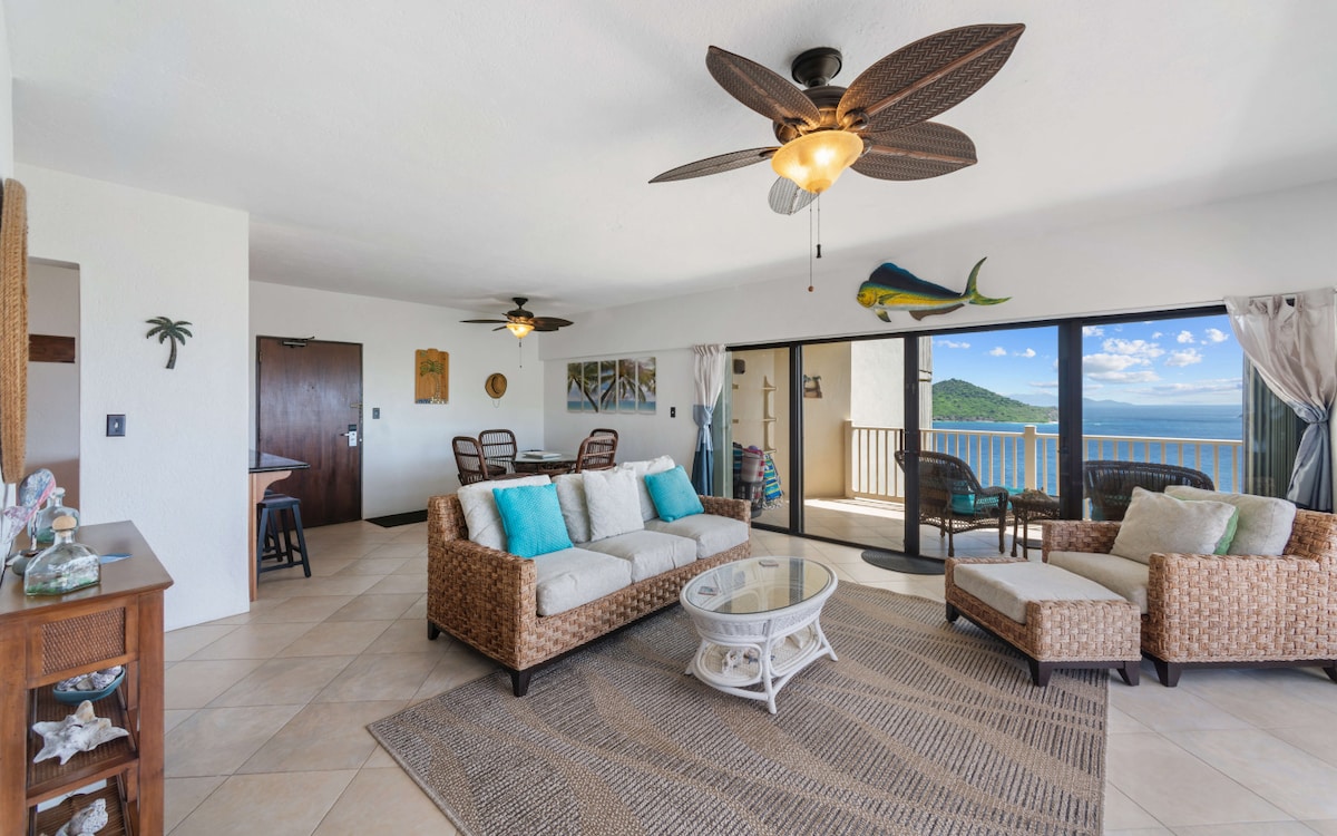 Saltwater Dreams ofrece vistas panorámicas de las Islas Vírgenes Británicas y más allá, desde espectaculares amaneceres hasta memorables puestas de sol. Este espacioso apartamento de dos dormitorios y dos baños ofrece dos plantas para la máxima privacidad. Una gran sala de estar y comedor, cocina completa y un inmenso dormitorio principal en suite abarcan el nivel principal. Subiendo un breve tramo de escaleras, encontrarás el dormitorio de invitados y el segundo baño completo.
