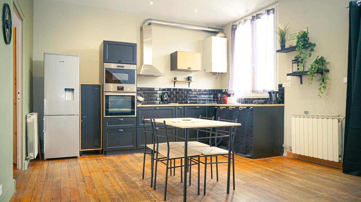 Relájese en este alojamiento muy tranquilo y elegante. Vista totalmente despejada de las alturas de Annonay, orientación este. Impresionante apartamento reformado totalmente equipado de 50 m2. Segunda y última planta. Cerca de todos los comercios. Estacionamiento cercano (place du champ de mars) Entrada, salón cocina sala de estar, baño y aseo, un dormitorio grande y un despacho con cama. Ventanas de doble acristalamiento. Gran smart TV, internet de fibra, cocina equipada, lavadora, cama de 140, aspiradora,etc... Entrada al edificio segura.