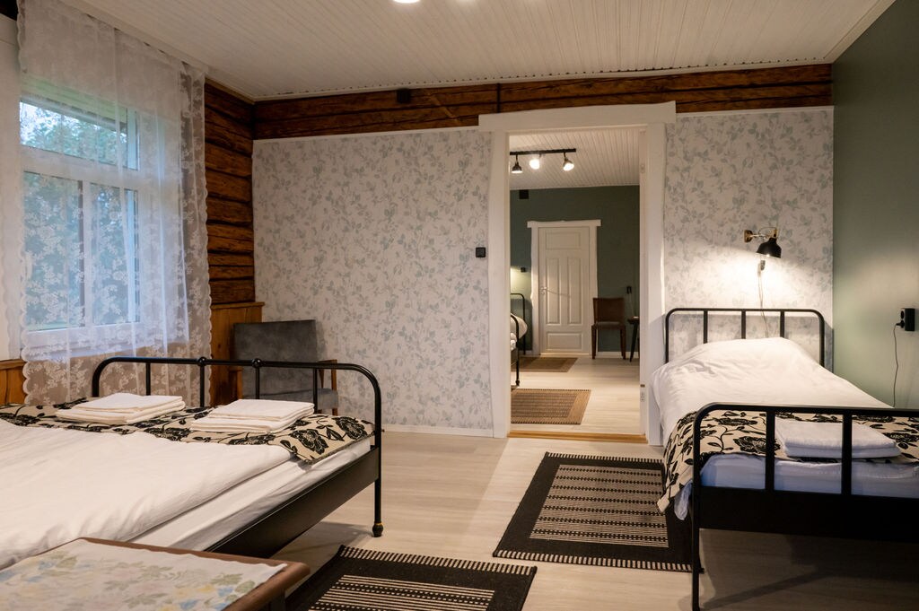 Built in 2017, this private 60 m2 winter-proof wooden house has 1 bedroom with a double bed and a large living room with an open kitchen. There is also an electric sauna and terrace that opens up to a meadow that is being naturally rewilded into a forest. Lots of natural light, AC, heated floors, a fully equipped kitchen, sauna and 4G wi-fi will provide a comfortable and relaxing stay in all seasons. There is a 22kW EV charger at your disposal, powered by 100% renewable electricity.