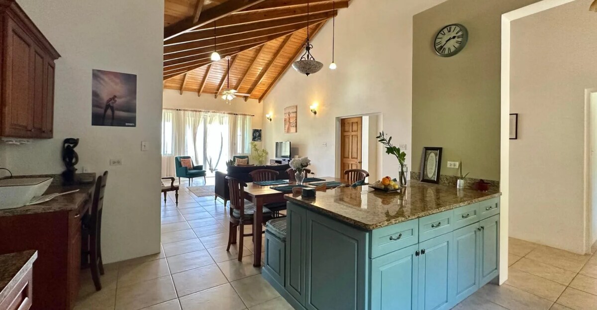 Bienvenido a su hogar lejos de casa en la isla: un espacioso refugio de 3 dormitorios con impresionantes vistas a la isla. Encaramada sobre Nanny Cay, nuestra villa moderna de caoba ofrece vistas panorámicas desde Virgen Gorda hasta San Juan, Islas Vírgenes de los Estados Unidos. Tanto si estás haciendo una barbacoa con la familia, como si estás disfrutando del paisaje o trabajando a distancia con Internet de fibra óptica de alta velocidad y un acogedor rincón de oficina, DenJen Villa ofrece la mezcla perfecta de comodidad, estilo y tranquilidad para una estancia verdaderamente memorable.