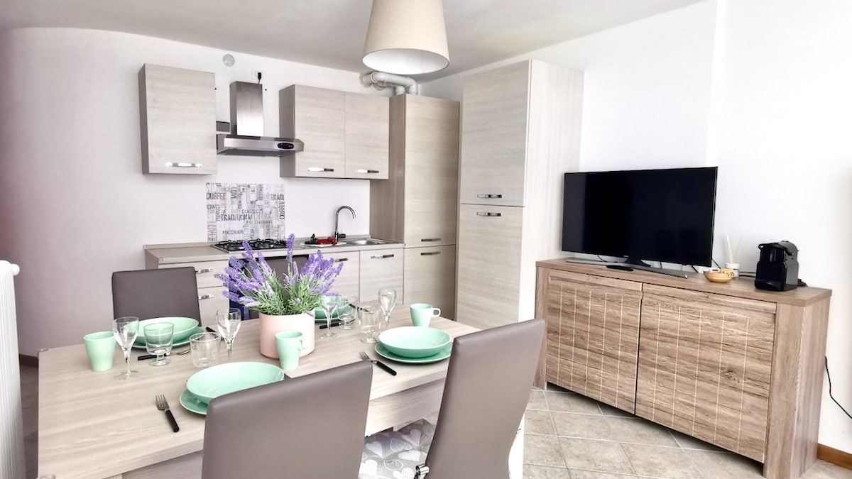 Newly refurbished apartment with everything needed for kitchen, bathroom and rooms, large terrace with beautiful views of the surrounding mountains and Adamello Park, just meters from the main road, surrounded by bars, pizzerias, beauty and wellness centers and shops every kind, bus stop 4 minutes walk away, free parking all around the square, in the middle of the main Alpine passes of Lombardy and Trentino Alto Adige, ecology-nature-sports-culture-relax-