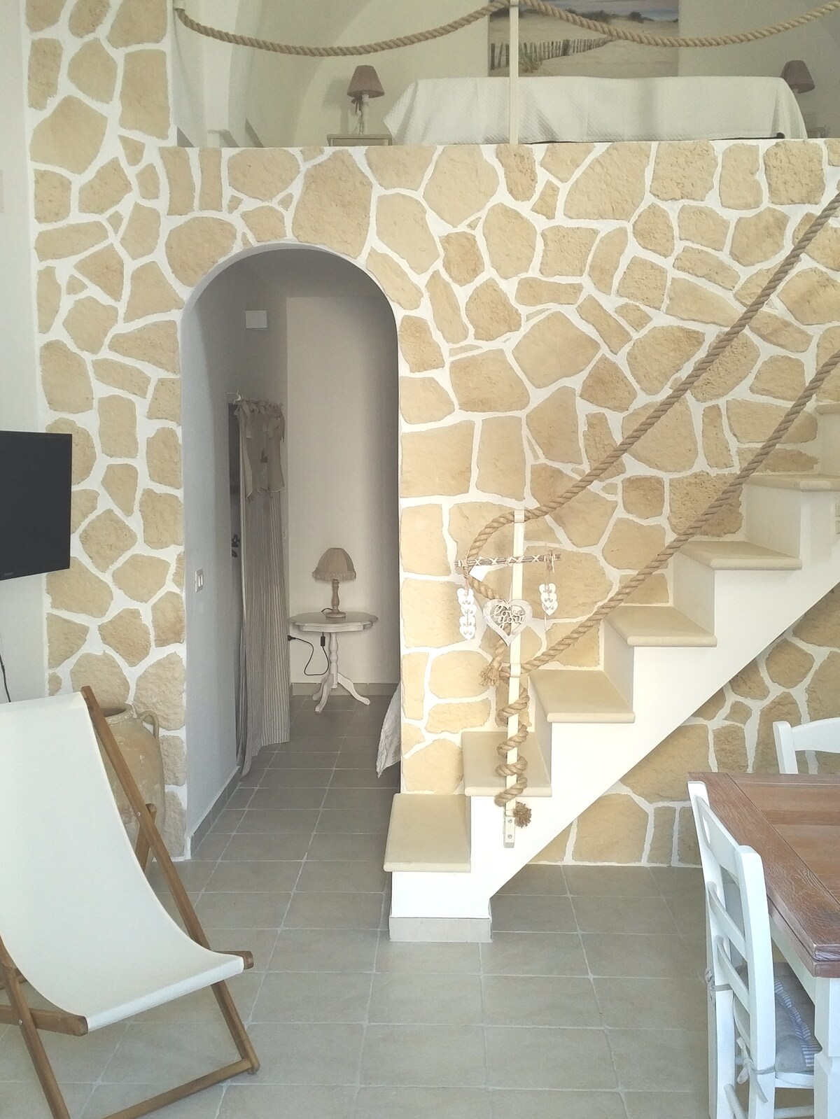 Casa dentro de una propiedad, situada entre la Torre de Sant'Andrea y Torre Dell'Orso. La casa es de tipo loft, con cocina, baño, dormitorio/sala de estar con una cama de matrimonio y dos camas individuales. Con balcón con barbacoa. Situada entre la Torre de Sant'Andrea y la Torre Dell'Orso. La casa es tipo loft, con cocina, baño, dormitorio/sala con una cama de matrimonio y dos camas individuales. Con una varanda con churrasqueira. La propiedad tiene acceso a la playa.