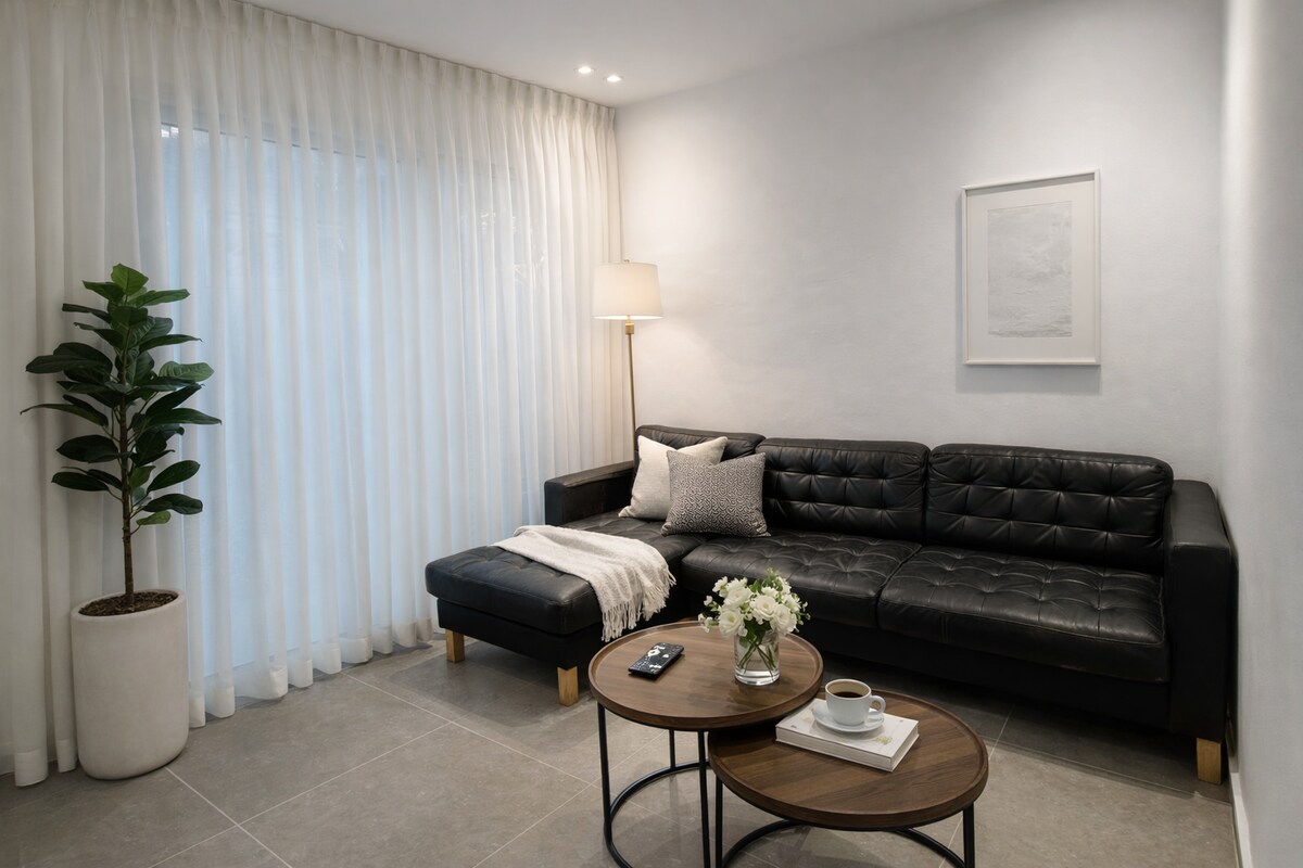 Este lugar es perfecto para unas vacaciones familiares o un viaje de negocios. Los apartamentos están en una residencia tranquila con vistas al mar y a las montañas. A 10 minutos del mar, centros comerciales y bares. Al lado de la sinagoga más hermosa de la ciudad. Estacionamiento gratuito en las instalaciones, carga para autos eléctricos, gimnasio ($). Se actualizó el departamento. Aire acondicionado nuevo. A petición de los huéspedes, la ducha aumenta. Lavadora, Nespresso, tostadora, secador de pelo, Wifi, Netflix, cocina. Cama y 2 sofás plegables. Hay un refugio en el sótano.