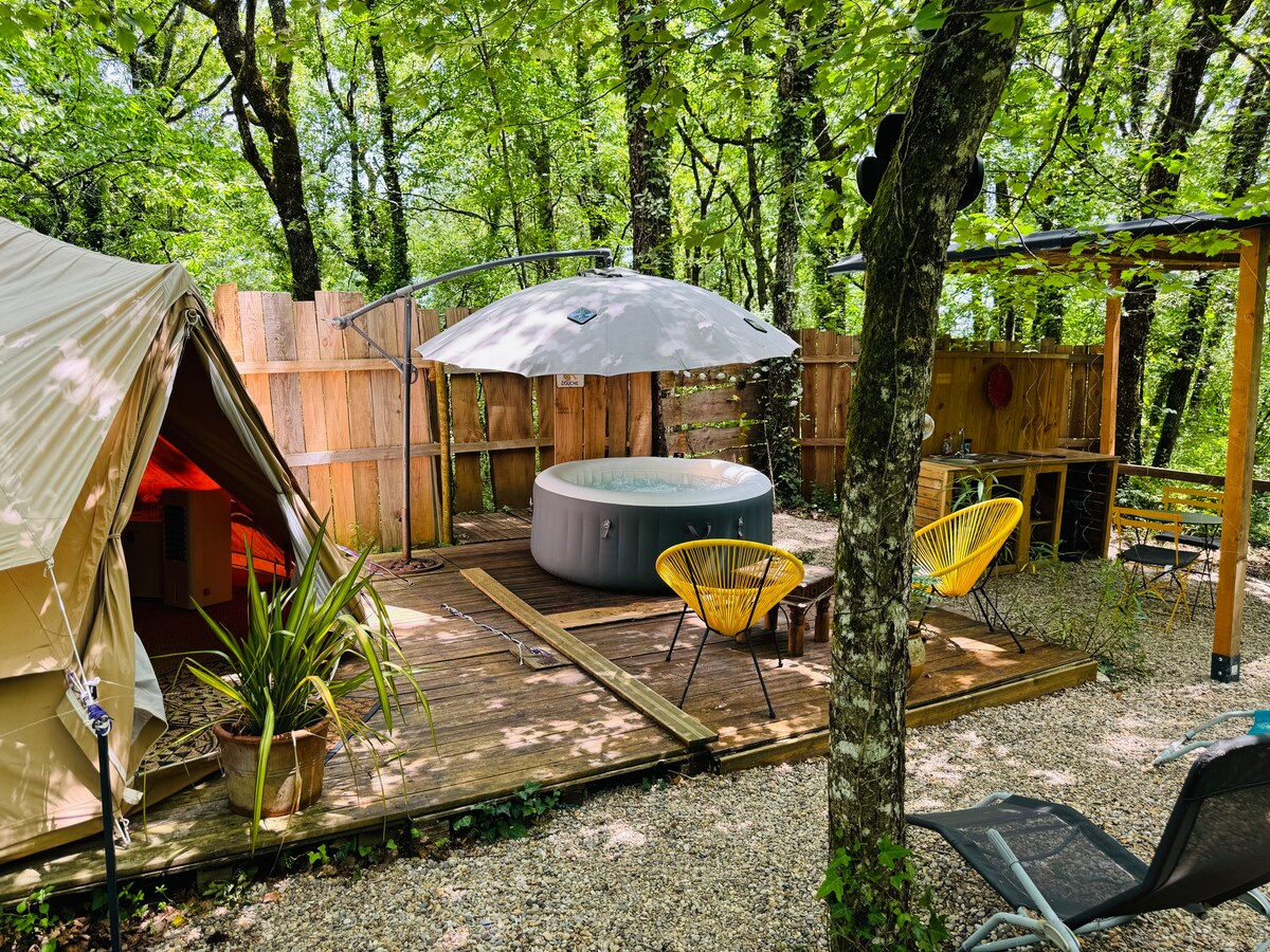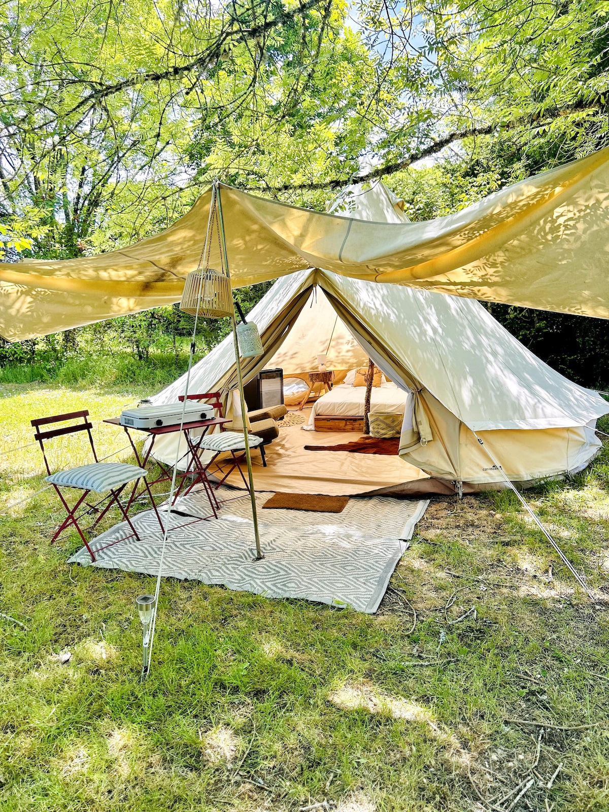 Inmersión Naturaleza garantizada, unas vacaciones en tienda a la sombra de los nogales, No tiene ganas de transportar su equipo o no tiene ninguno, desea vivir la experiencia del camping por una noche o una semana, para una etapa de senderismo, canoas o una semana compartida en pareja. Disfrute al 100% de un momento de desconexión en el ambiente de la tienda de algodón sin renunciar a la comodidad, un verdadero nid acogedor.