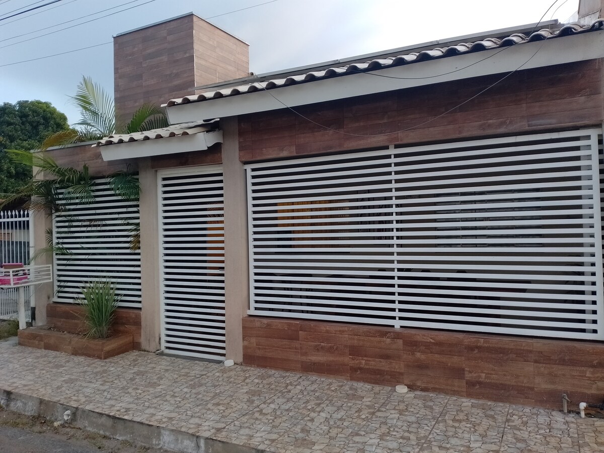 Casa acogedora, privada, situada en un barrio tranquilo y cerca del centro y de las principales atracciones de la ciudad. Totalmente amueblado, con aire acondicionado dividido en dos dormitorios, wifi, Smart TV, cocina equipada. Arejada, espaciosa y limpia. Mercados cercanos, snackets y heladería.