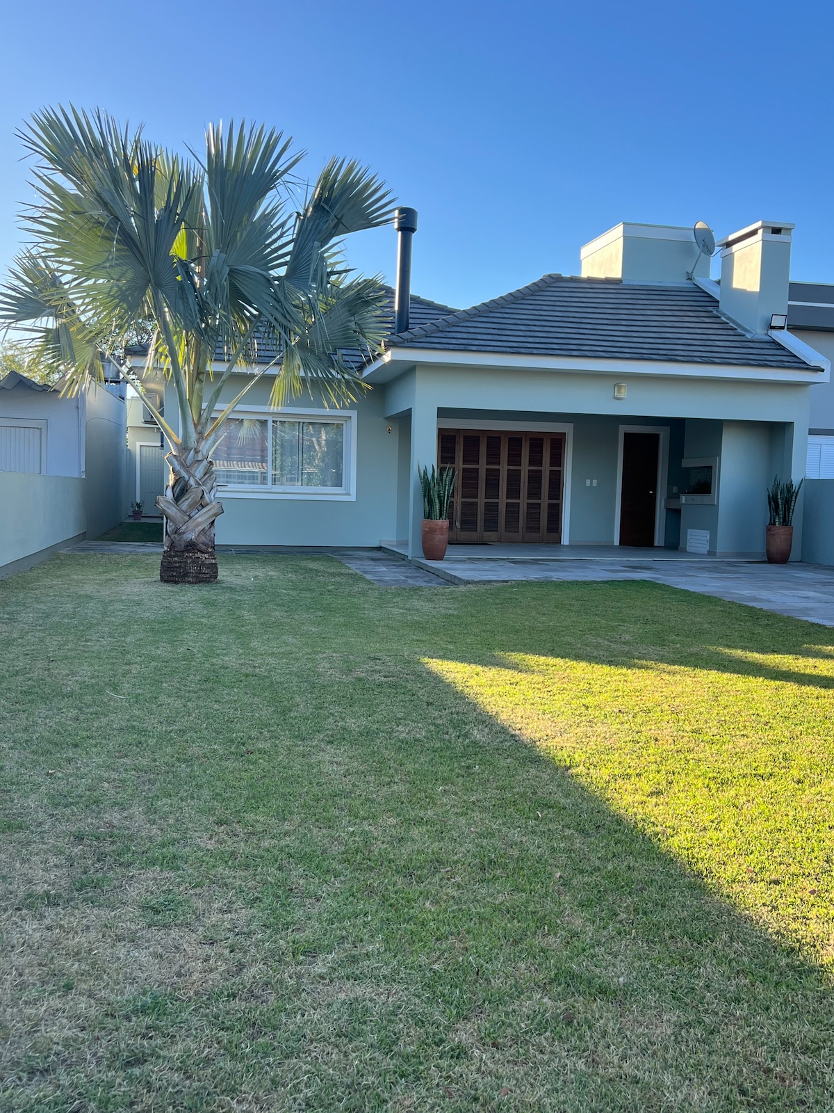 Casa com 3 suítes, churrasqueira, lareira, 3 camas casal, 1 cama solteiro e 1 berço, com Wi-Fi , moderna, em local tranquilo a duas quadras da praia. Tv com Globoplay e Netflix, Alexa, ar cond. em todos os quartos na sala e cozinha, rede de descanso, cafeteira, cafeteira Nespresso, torradeira, batedeira, liquidificador, forno elétrico, microondas, lavanderia, máquina de lavar roupas. Casa bem equipada para o veraneio, com cadeiras de praia, guarda sol, cooler, carrinho de levar cadeiras de praia
