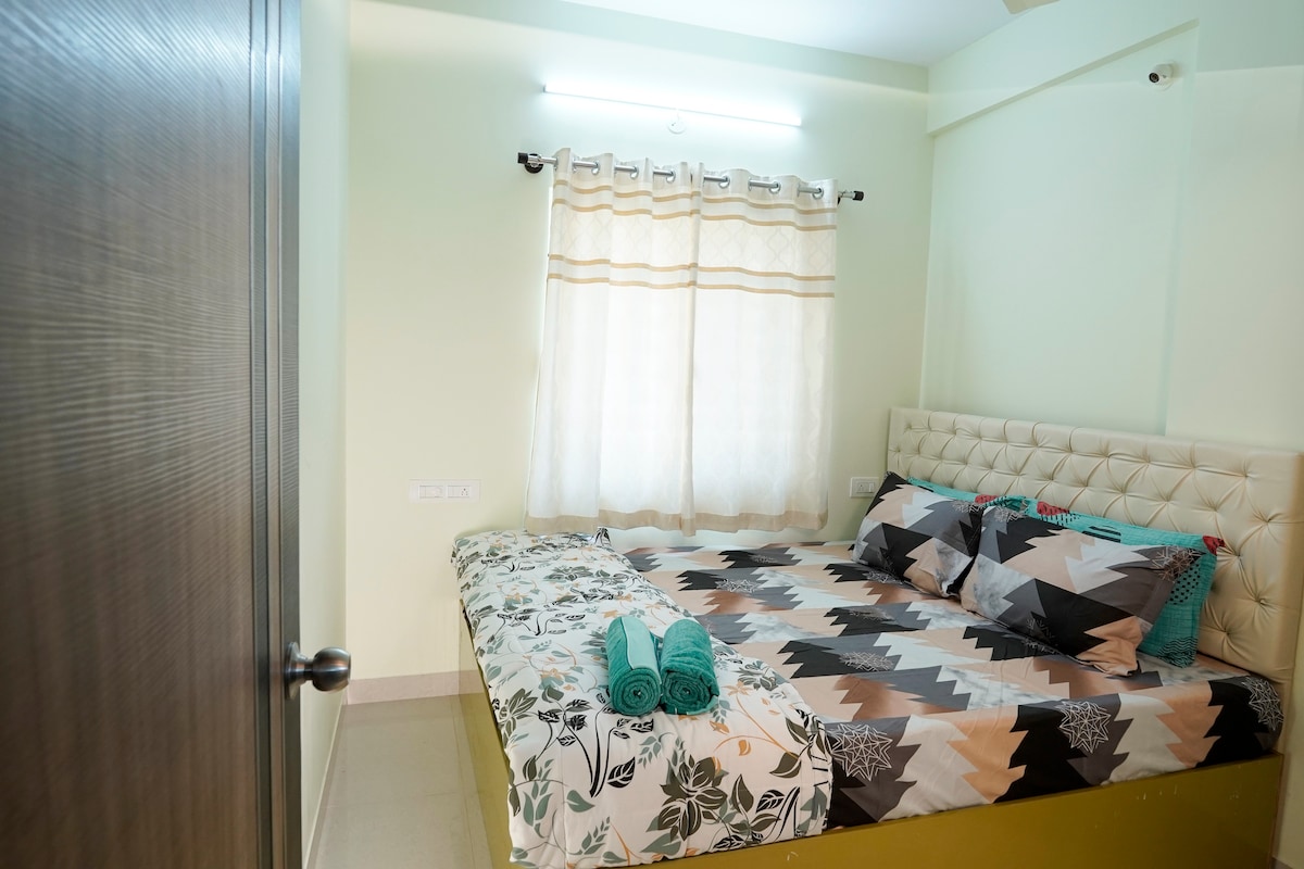 ¡Da la bienvenida a nuestra ubicación céntrica en Airbnb! De nueva construcción, hospeda a 4 huéspedes en 2 habitaciones con 2 baños. Disfruta del acceso al ascensor, la terraza abierta y los servicios de cocina. Aire acondicionado en el pasillo, ventiladores en las habitaciones. Se proporcionan servicios de inodoro. Cerca de 100 pies de carretera de Indiranagar, metro accesible en 5 minutos. Pedido de Zomato/Swiggy. Estacionamiento disponible. ¡Experimenta el encanto de Bangalore con vistas al metro! La cocina bien equipada cuenta con estufa, microondas y nevera, lo que te permite preparar comidas caseras. ¡Esperamos poder hospedarte!