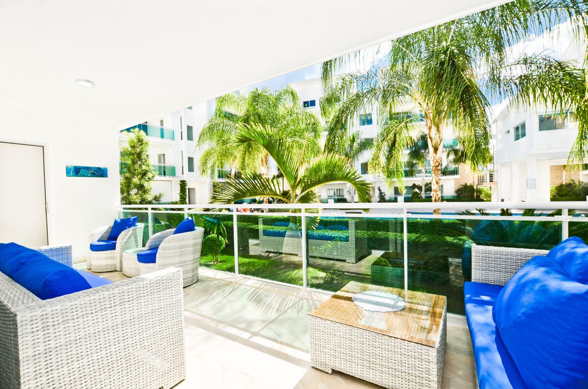 Espectacular Apartamento de lujo con piscina privada en la terraza. Un nuevo concepto de apartamentos en Punta Cana que te proporcionará confort, privacidad y seguridad para pasar tus vacaciones. Habitaciones amplias, cocina totalmente equipada, muebles de diseño, wifi de alta velocidad, check in online con la ultima tecnología. Una nueva experiencia para disfrutar de Punta Cana ! A 4 MINUTOS CAMINANDO DE LA PLAYA !!! Este alojamiento con estilo es perfecto para viajes en Pareja o Familias.