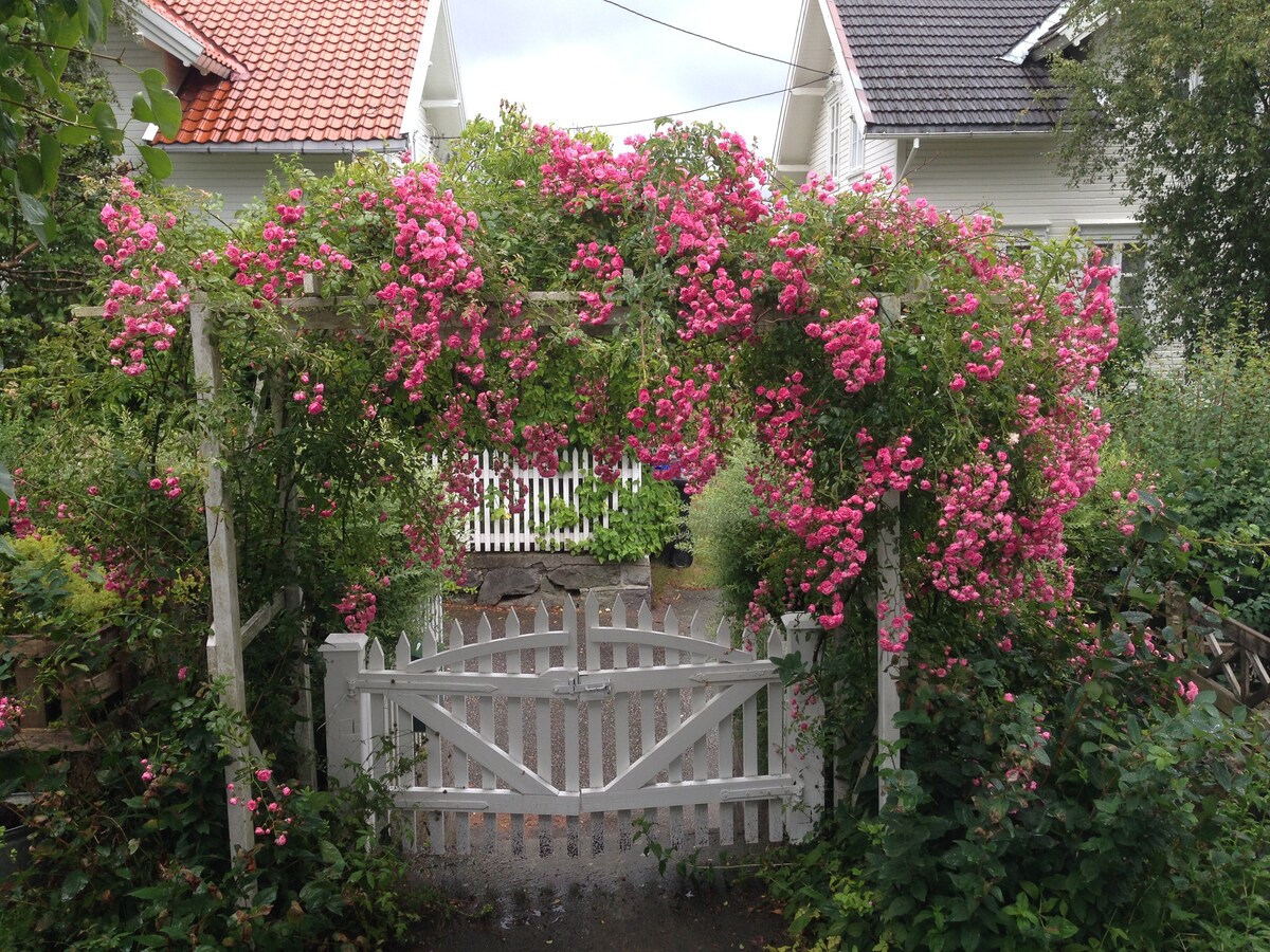 Encantadora casa antigua del sur con un jardín soleado y un porche soleados. A poca distancia a pie del centro de la ciudad. Espacio para un auto. Alquilado durante toda la semana durante Arendalsuka, mínimo 4 noches. La residencia tiene unos 80 metros cuadrados y consta de dos dormitorios, ático, baño, lavandería y sala con solución de cocina abierta. La residencia tiene un resplandor en el mar y está a 80 metros del fiordo de la ciudad. A solo 5 minutos del centro comercial con farmacia, tienda de comestibles, cafetería, etc.
