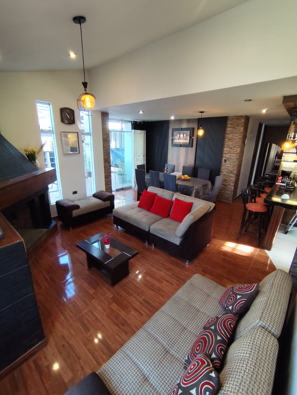 Bienvenidos a esta Bóveda Industrial de Diseño A una cuadra de la Plaza de Armas, este lugar ofrece una experiencia única, inspirada en el ladrillo rústico industrial Disfruta la experiencia de vivir en la ciudad blanca de sillar! Comodidades: • 🏡 Amplias áreas y cocina totalmente equipada • 🛋️ Sala acogedora estilo bóveda industrial • 🔥 chimenea • 📺 TVs gigantes • 🚙 Cochera exterior • 🧺 Lavadora y secadora • 🎱 Mesa de Billar • 🛀 1 Baño gigante con 4 duchas, 3 lavamanos y 3 inodoros