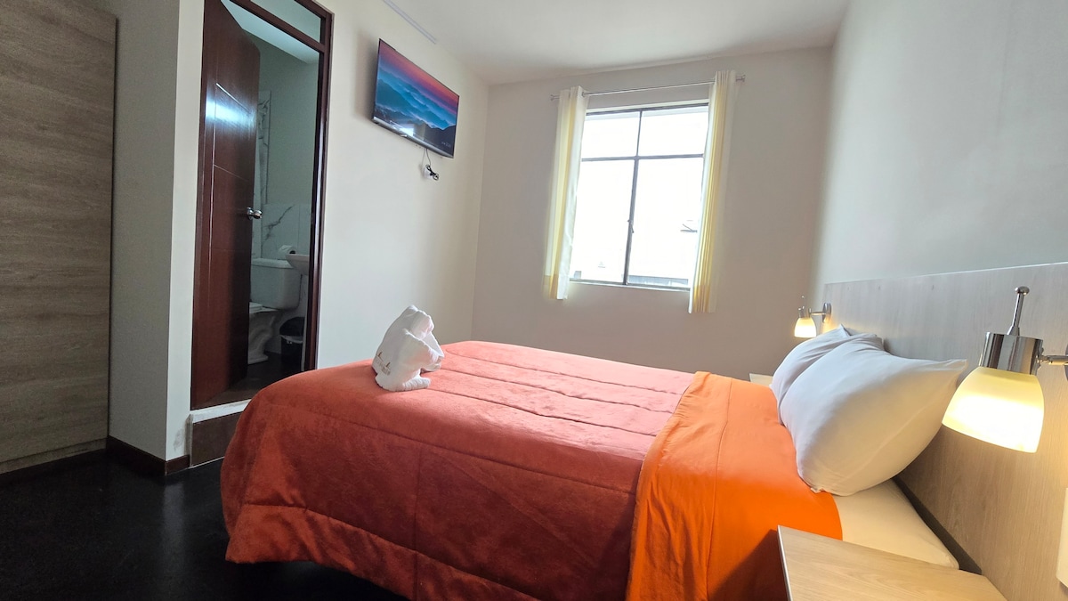 Disfruta de este encantador espacio para quedarte, cerca de todo,en la esquina de la Plaza de Chivay camas con plumones, cuentan con TV 55", agua caliente en ducha y lavatorio las 24 horas, , cortinas black out, baños A1,incluye un delicioso desayuno.