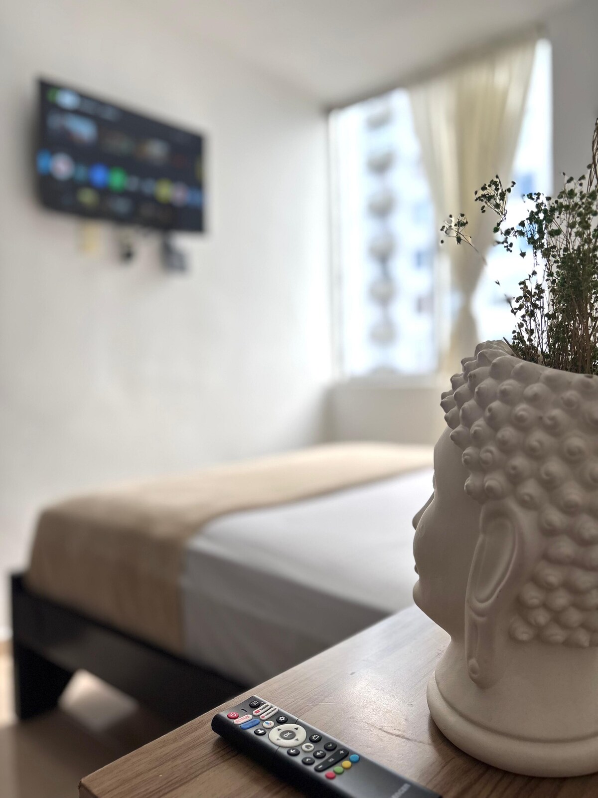 Acogedor Loft en Edificio Soho - en el barrio la Castellana. Disfruta de un espacio tranquilo e iluminado, cerca de supermercados, centros comerciales, clínicas y zona gastronómica en la ciudad de Armenia. El alojamiento cuenta con una habitación amplia, cocina completamente equipada, lavadora, agua caliente, Wifi de 300 Mops, TV Smart y una excelente vista hacia las montañas. El edificio cuenta con portería 24 horas, ascensor, supermercado, parqueadero en el exterior. Número de registro 217986