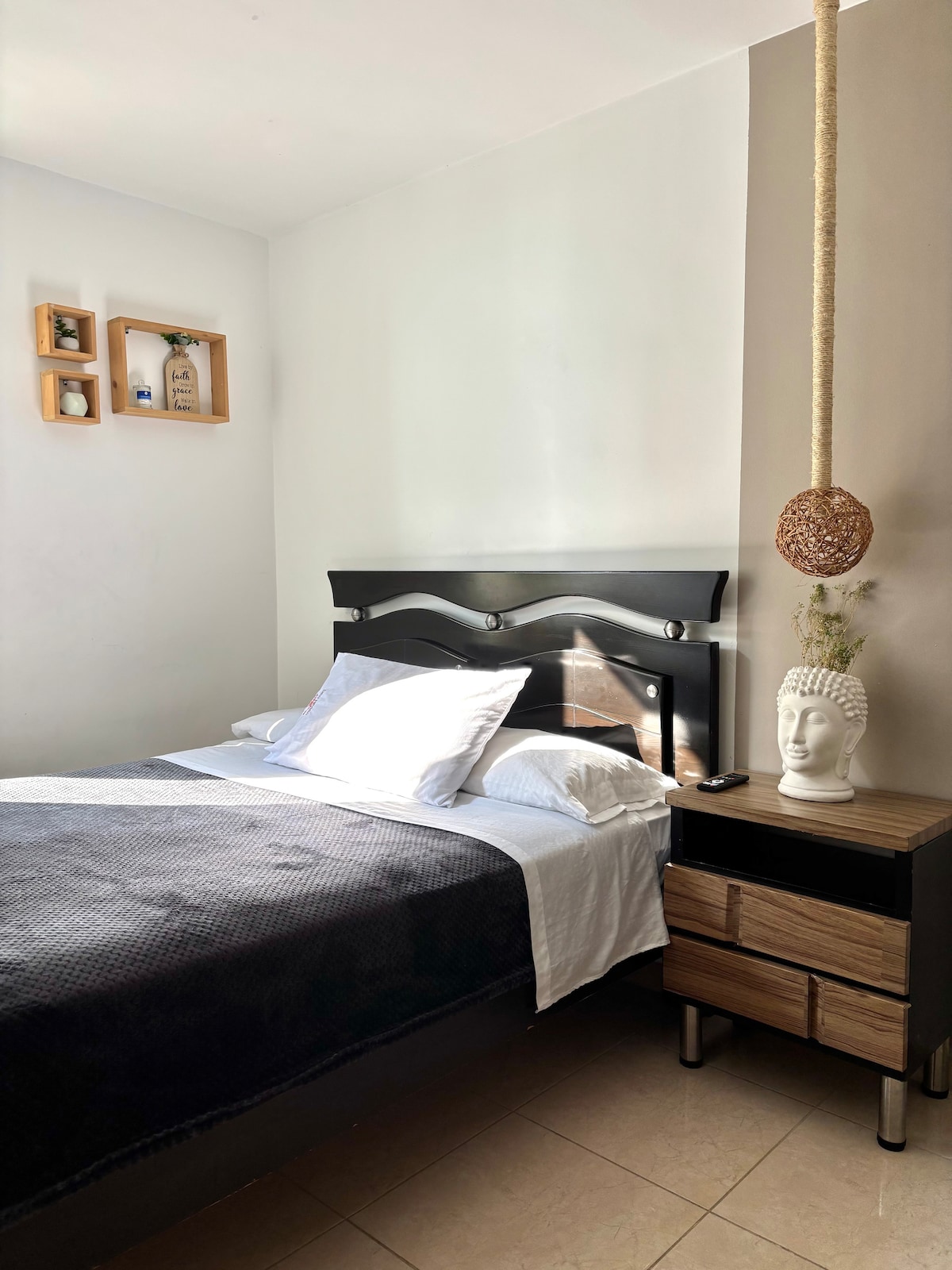 El alojamiento cuenta con una hermosa habitación Disfruta de un espacio moderno y acogedor, con una hermosa vista a las montañas y a la Cordillera Central. Está equipado con todas las comodidades necesarias para una estadía confortable: TV HD, sala, barra americana, cocina totalmente equipada, zona de ropas, baño con agua caliente, wifi y sky lounge. Siempre estaremos atentos a cualquier necesidad que tengas durante tu estadía, para que tu experiencia sea lo más agradable posible.