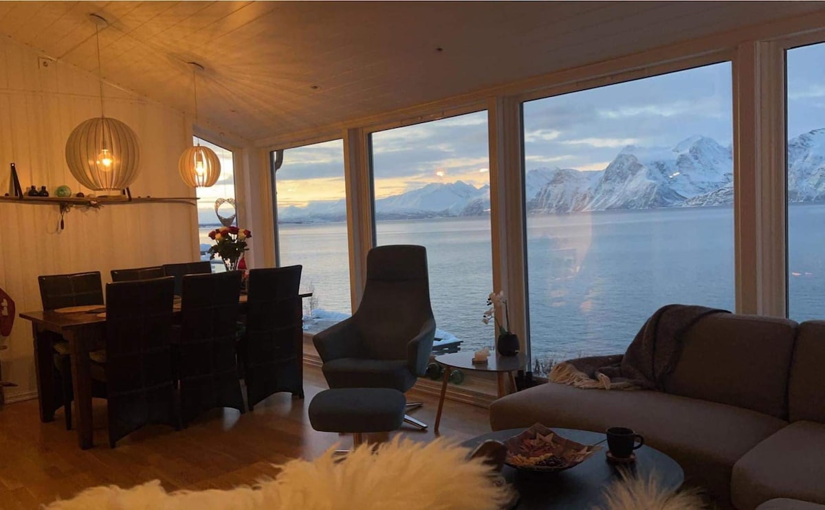 This is our brand new holiday house. Near the ocean in a beautiful quiet place, amazing view and nature around. You can see the northern lights right outside. Its only fifteen minuts by car to Skjervøy where you can go on a whale- and orcas safari. Big mountain for hiking and skiing around. Driveable to the front door. Big open kithen/livingroom. 2 bedrom (3-for extra). Large bathroom with sauna, large tub and shower. Apple tv, wifi and built in AC/heatpump. Max guests 7 persons.