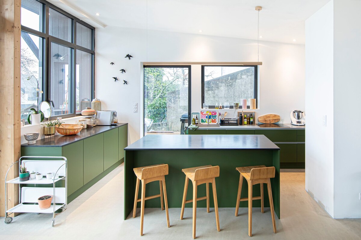 Relájese en este alojamiento tranquilo y encantador. Pasará su estancia en el corazón de un parque arbolado con árboles centenarios y edificios que datan del siglo XIX, donde se oyen cantar los pájaros desde el amanecer. Podrá disfrutar de las numerosas rutas de senderismo y ciclismo de montaña desde la casa o simplemente quedarse al lado de la piscina. La orilla del mar y Vannes se encuentran a 15 km en coche. El centro de la ciudad está a 2 minutos en coche con todas las comodidades. ¡Bienvenido a Ty Laouen!