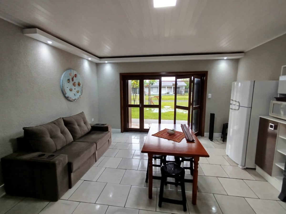 Para aquellos que buscan una playa tranquila, para descansar, surfear o pescar, nuestra casa es ideal, ¡se encuentra a una cuadra del mar! A 15 minutos del centro de Arroio do Sal y a 30 minutos de Torres. La casa es nueva, nuestras instalaciones están diseñadas para dar la bienvenida a nuestros huéspedes, el patio es grande y está vallado, el garaje está cubierto, con parrilla y estufa de leña, la cocina está completa (todos los utensilios y electrodomésticos), ¡proporcionamos ropa de cama!