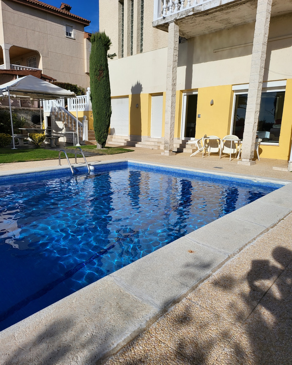 ¡Bienvenidos a su hogar lejos de casa! Acceso independiente. BBQ y cenador para 8-10 personas. Relájate en la piscina y jardín. WIFI de fibra óptica en toda la casa. Ubicado frente al Centro Comercial Xanadú y la pista de nieve artificial, tendrás acceso a tiendas, restaurantes y actividades emocionantes. No te pierdas el festival MXGP Spain ni la deliciosa gastronomía local. ¡Ven y vive una experiencia memorable (No se aceptan visitas). Casco antiguo de Madrid a 25 mins. en coche
