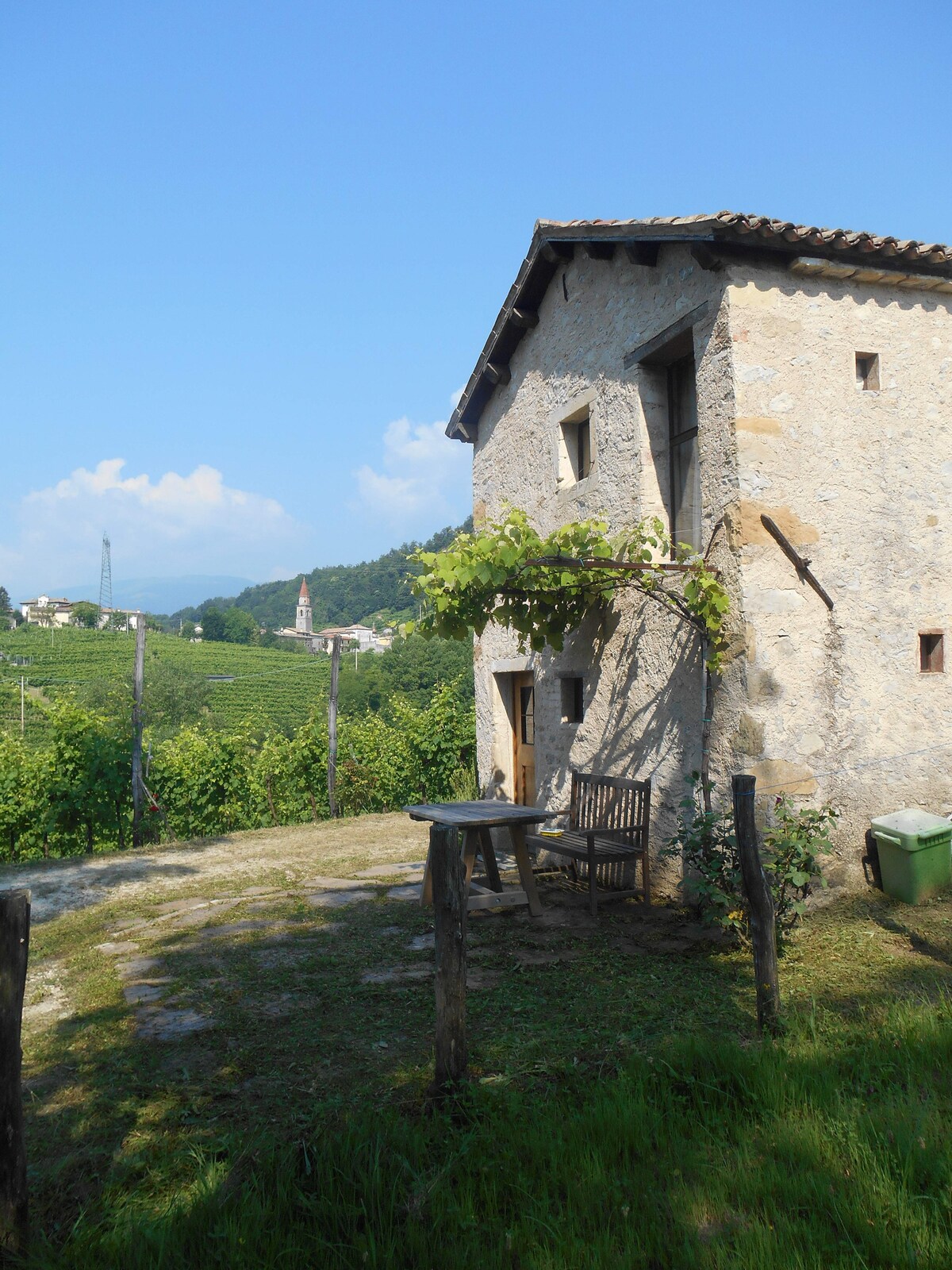 La cabaña se compone de una unidad independiente ubicada en los viñedos Prosecco DOCG que, junto con los bosques de castaños, cubren las colinas circundantes. Desde aquí, arrullado por el sonido del viento y el canto de los pájaros, los huéspedes pueden ver el pueblo de Rolle, con sus campanas que tradicionalmente han cadallado el trabajo en los campos, las colinas circundantes y el monte Cesen. La casa pequeña y antigua fue una vez la residencia y el taller de artesanos que hicieron el famoso "olle" local, es decir, ollas de barro.