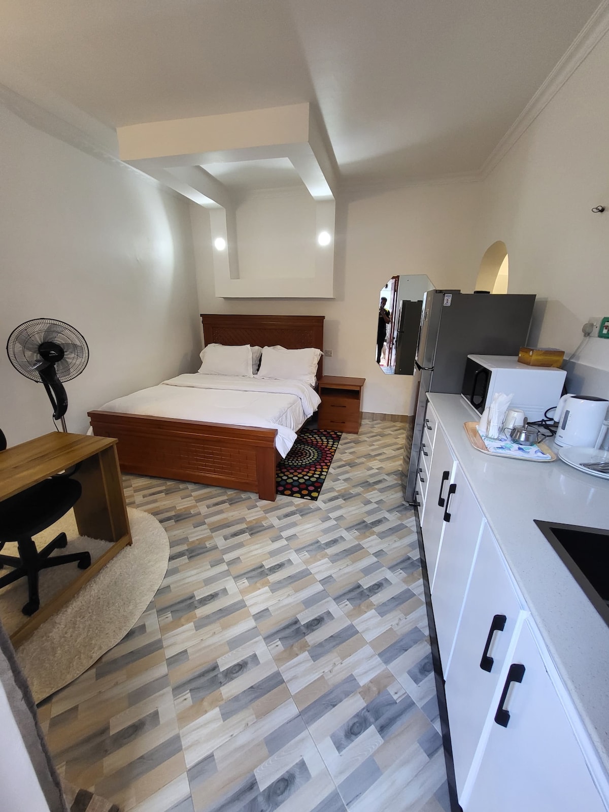 Una encantadora y acogedora zona de soltero con comodidades modernas ubicada en el barrio seguro de Njiro, a solo 10 minutos en auto del centro de la ciudad de Arusha. Ideal para viajeros solitarios o parejas, es la mezcla perfecta de comodidad y comodidad: cerca del centro de la ciudad, pero lejos de su bullicio. Si bien Sun Suite se encuentra en una propiedad compartida junto con nuestra casa familiar, los huéspedes tienen su propia privacidad e independencia. Los anfitriones siempre están disponibles para ayudarte con cualquier cosa que puedas necesitar para mejorar tu estadía.