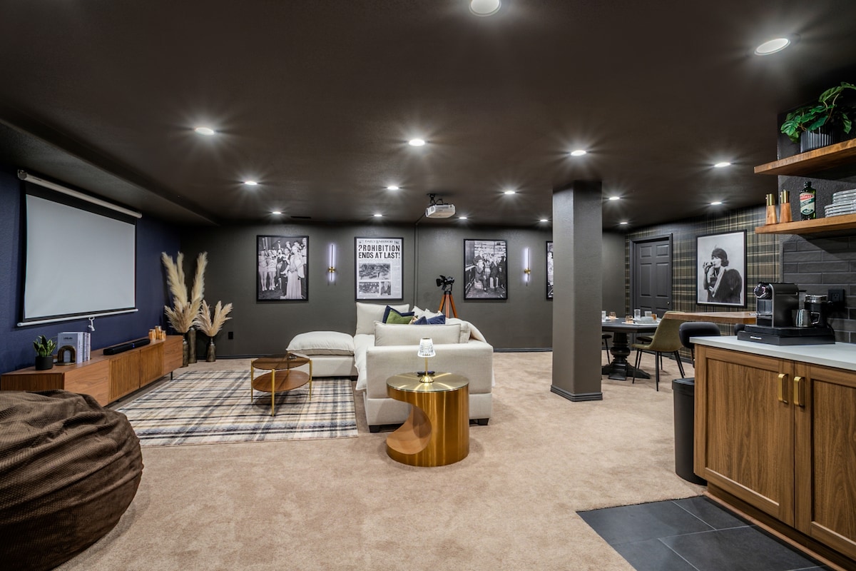 ¡ColorPop BNB cuenta con 2600 pies cuadrados de espacio moderno y acogedor, 6 dormitorios/3 baños y una cocina luminosa equipada con productos esenciales! Relájate en el patio cubierto digno de Instagram bajo las luces de cuerda después de un día explorando. Relájate y disfruta de tus películas favoritas en la pantalla de cine 4K de 100 pulgadas. Desafía a tus mejores amigos a jugar al billar en la sala de juegos del garaje convertido: ¡el ganador podrá elegir su cama primero! Consejo profesional: los favoritos están en el escondite de la habitación de los niños (gran armario de Harry Potter), ¡pero pueden dormir dos adultos de hasta 5'10"!
