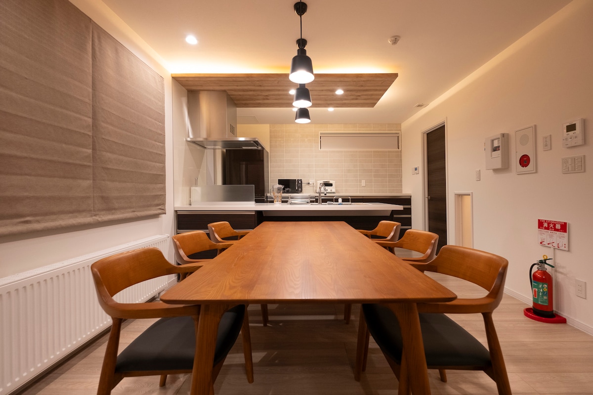 【2泊以上:旭川空港・駅からタクシー1台片道無料+7名以上2台無料】【近隣駐車場代も無料】※選択1つ このグレードのAirbnbは周辺にはありません!旭川富良野でも数件だけです。 隣に広大な有料駐車場があるので安心して下さい🅿️🚗 宿泊毎に毎回暗証番号が変わるのでセキュリティが安心🔐 駅から直線Pedestrian Mallに面した、高級ホテルのスイートルームが再現されたような巨大フロアのお部屋です。 3家族+乳児2名余裕! 【USP】 ●セブンイレブン徒歩1分🏬 ●寝室4部屋、ベッド8台🛏️ ●🛁バスルーム3、🚽トイレ3、💄洗面化粧台3 ●高級旭川家具🪑 ●150インチ4Kプロジェクターシアター📽️ ●500M程度の高速wifi⚡️ ●ベビーベッド、チェア、バウンサー2、バス1👶 ●ワイン専用冷蔵庫グラス完備🍷 高級ホテルのスイートルームよりリーズナブルにお楽しみいただけます。 建物正面には有名芸能人が企画した沢山の居酒屋があるエリア、建物内にカフェも併設されています。 周辺は飲食店が沢山あるので全く困りません!皆さんで探検してみて下さい🍻