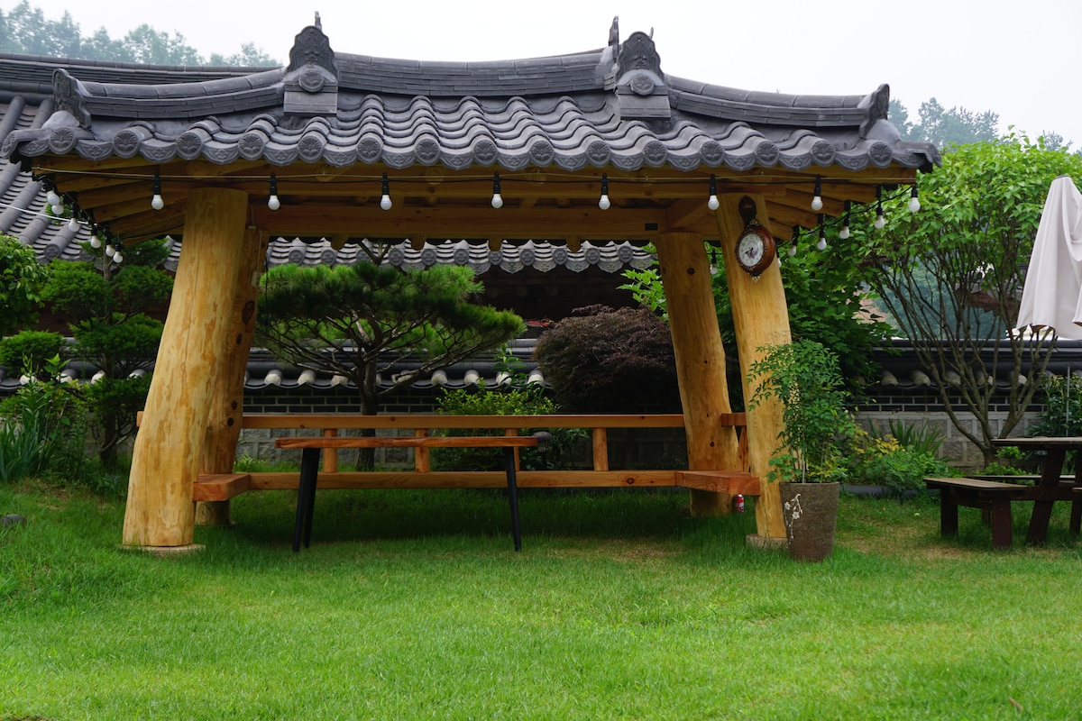 Viaje de sanación emocional con amigos 🫧 Fiesta de barbacoa🎇 con Bulmung🍖 (✨gratis✨) Puedes pasar un rato tranquilo y en armonía con tu familia. Se encuentra en un pueblo tranquilo y natural rodeado de parques, montañas y lagos. Siente la elegancia y el ambiente en un hanok renovado con un toque moderno🌿 🐶 El cachorro está creciendo (desde 2021.01) ¿Tienes miedo a los perros? No dudes en decírnoslo. ☺️ Para quienes les temen→ a los perros 🐾 El perro permanecerá en una jaula o en un espacio separado durante un tiempo. El chat de🥲 mis padres puede ser franco. Son personas cálidas cuando nos encontramos.
