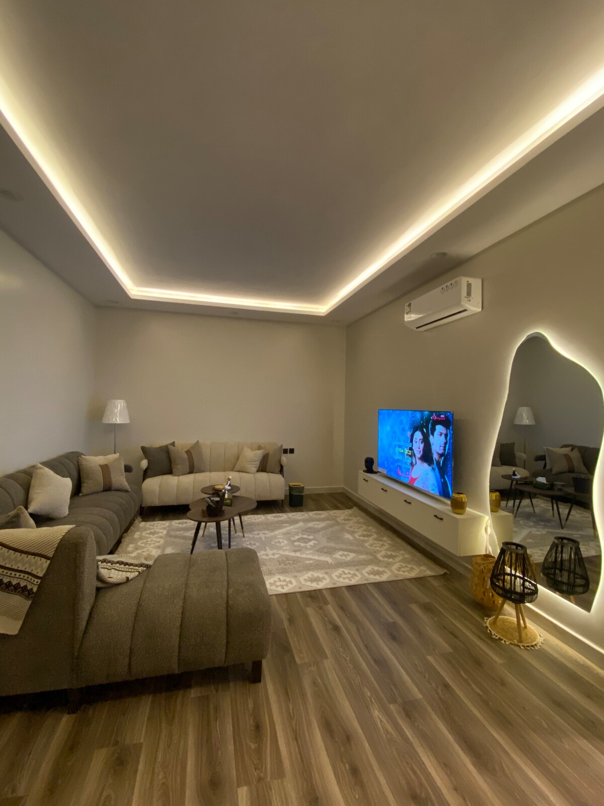 Apartamento con habitación principal Elegante y cómodo salón de diseño y formato con: Smartcreen y wifi Coffee corner including (cafetera y hervidor de agua) Cocina americana ( Refrigerador, microondas y utensilios para comer) Entrada independiente al inodoro y coche de garaje. El lugar es tranquilo y privado para pasar un tiempo de calidad alejado del ruido Ubicación Al Maya Road frente al restaurante Kif Tuqam y Umm Henkri Cerca de 3K lejos de Boulevard Está a unos 7 km del aeropuerto. Nota. Está prohibido prender fuego dentro del apartamento saturado.