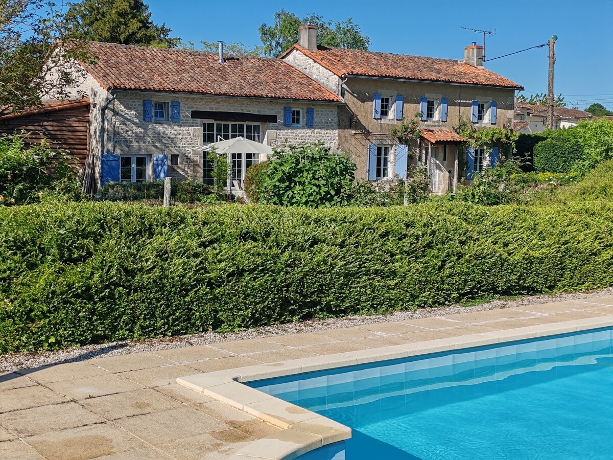 La casa de campo es perfecta para unas vacaciones de vuelta a la naturaleza, pero con piscina privada y jacuzzi. Paz y tranquilidad, perfectas para que una pareja se relaje y disfrute de la Francia rural. No hay otros huéspedes en la propiedad. Hay hermosos paseos en la puerta con un molino medieval en el río Charente a 300 metros y caminos que se extienden por millas alrededor de la zona. La hermosa ciudad vieja de la abadía de Charroux está a 8 km de distancia y estamos a media hora de Civray, Ruffec y Confolens.
