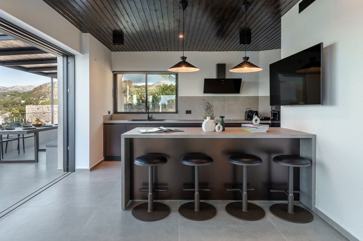 Una casa de nueva construcción abre sus puertas este año, por primera vez para dar la bienvenida incluso a los huéspedes más exigentes. La privacidad que ofrece la villa junto con la arquitectura que combina lo moderno con la decoración minimalista, en combinación con los espacios cómodos y la impresionante fachada con vistas al azul infinito del mar Jónico, lo convierten en un lugar acogedor y encantador. ¡Disfruta de tu estancia en este espacio relajante y elegante!