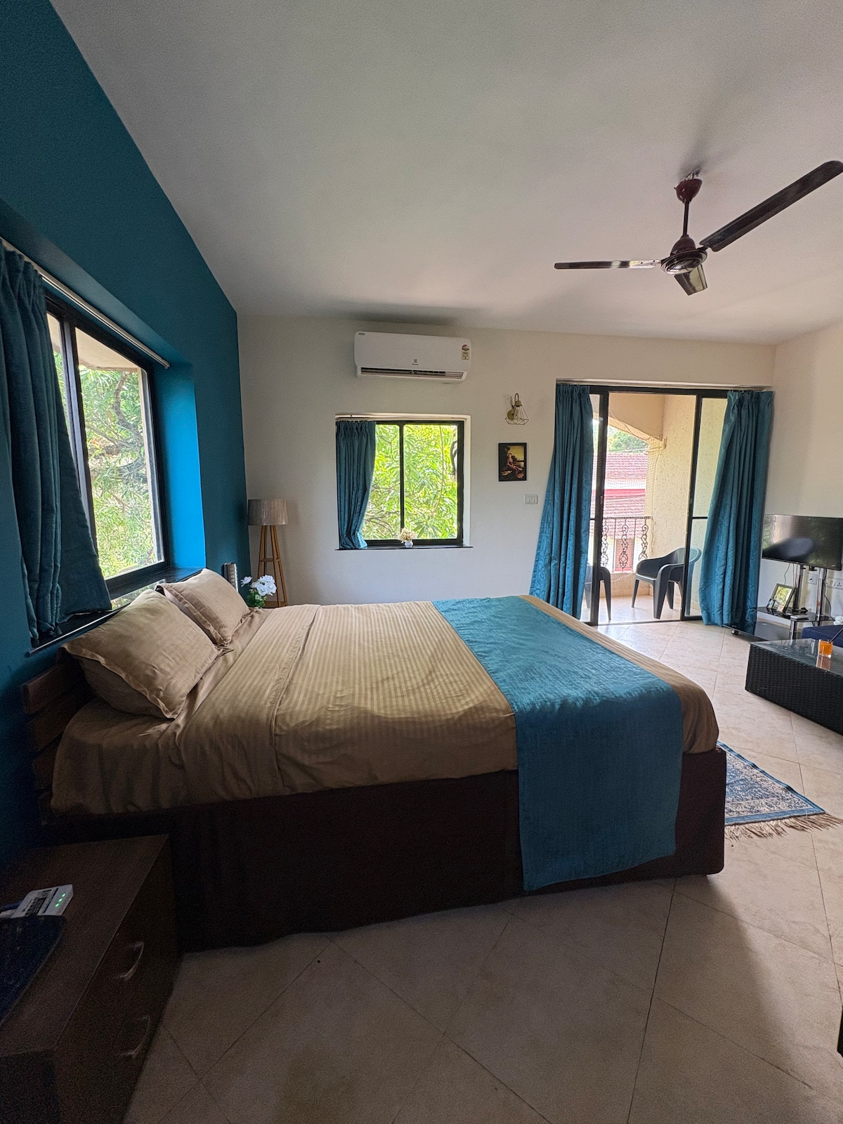 Bluecouch ofrece lo mejor de ambos mundos: una escapada tranquila enclavada en medio de una exuberante vegetación, pero a poca distancia en coche de la vibrante energía de las emblemáticas playas de Goa como Vagator y Anjuna. ¿Quieres tomar el sol, disfrutar de las olas o disfrutar de las legendarias fiestas en la playa? Súbete a tu bicicleta y llega en un instante. Pero cuando anhelas paz y tranquilidad, retírate a tu paraíso azul, donde reina la serenidad. ¿Qué ofrecemos? Piscina compartida Servicio diario de limpieza Doble wifi Artículos de tocador