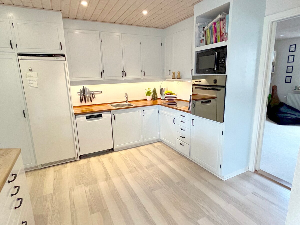 Gran apartamento recientemente renovado en un entorno tranquilo cerca de bosques y campos. El apartamento tiene su propia entrada y está situado en el primer piso. Posibilidad de uso de muebles de jardín y refugio. Wifi estable y rápido 1 dormitorio con cama de matrimonio, y posibilidad de alquilar un dormitorio adicional, así como altillo con cama de matrimonio. Se puede pedir prestada una cuna o un cochecito. Incluye ropa de cama y toallas. Buen espacio para aparcar, pero no hay posibilidad de cargar un coche eléctrico. Compras 5 km, playa más cercana 5,3 km, autopista 9 km.