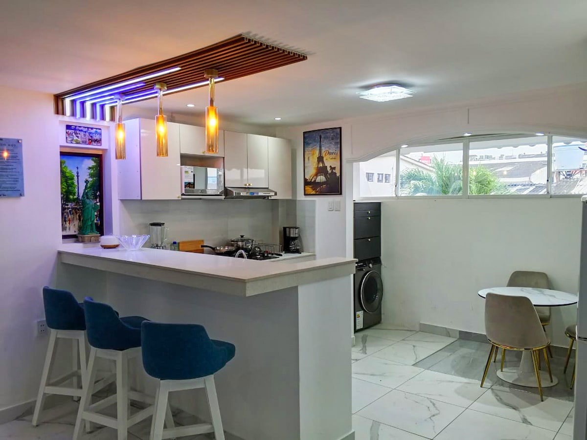 Suite de lujo ubicada en segundo piso alto(se sube escaleras). La ciudadela es privada y cuenta con guardiana 24/7. Junto a C.C. San Marino. Posee sala, cocina, dormitorio, baño privado, TV smart con Netflix, wifi, refrigeradora, estacionamiento. El acceso a la urbanización es controlado y hacemos lo posible para agilitar el proceso a nuestros huéspedes; no obstante, puede que tome unos minutos adicionales de espera.