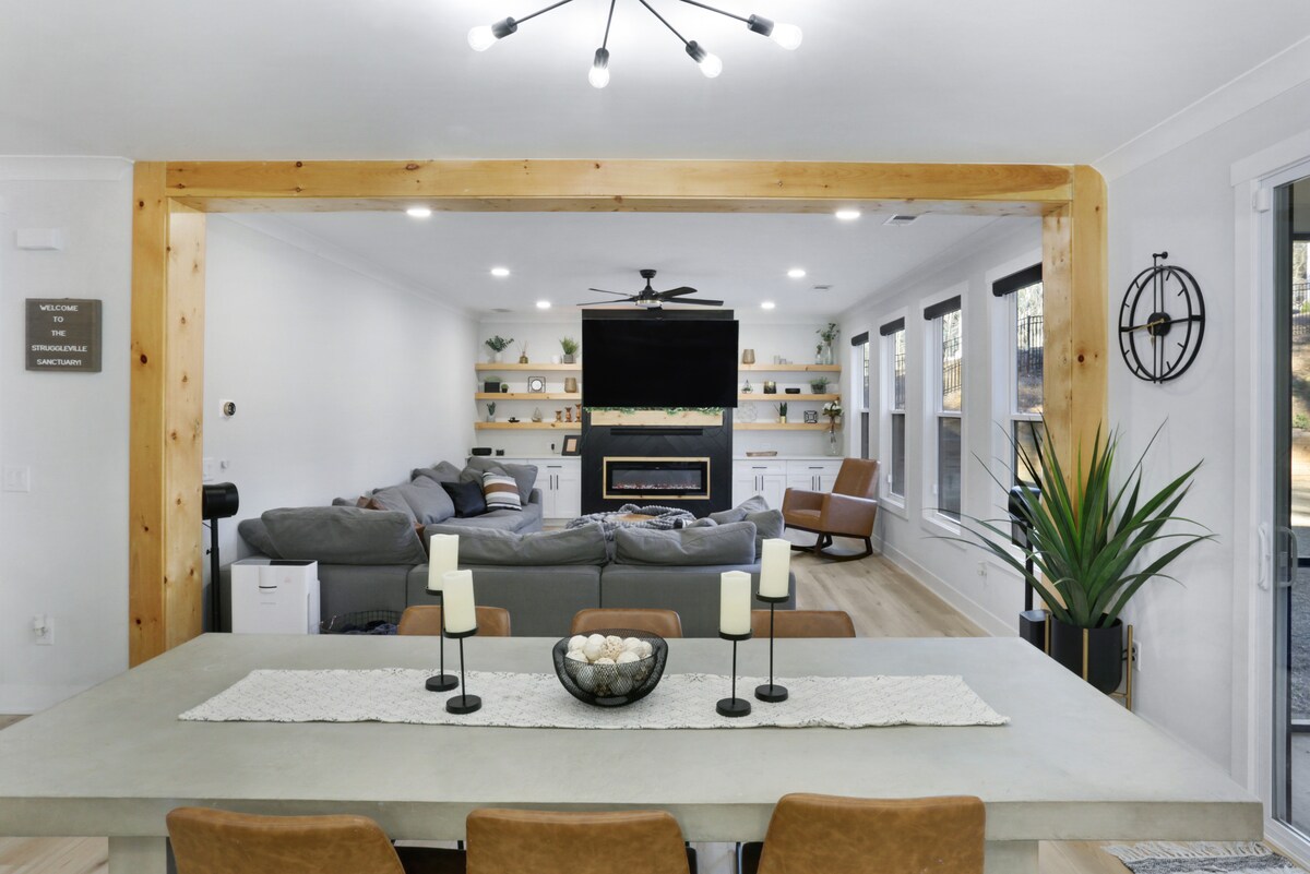 Ven a descubrir la hermosa Atenas, GA en The Onyx, tu hogar lejos de casa. ¡The Onyx es nuestro refugio de 3 dormitorios y 2 baños recién construido en el vibrante corazón de Atenas! Este elegante refugio combina el lujo moderno con la hospitalidad sureña, lo que garantiza una estancia encantadora para todos los huéspedes. Ideal tanto para visitas cortas como prolongadas, nuestros servicios satisfacen todas tus necesidades. Ahora relájate y disfruta de todo lo que ofrece Atenas, GA (¡Vamos Dawgs!)