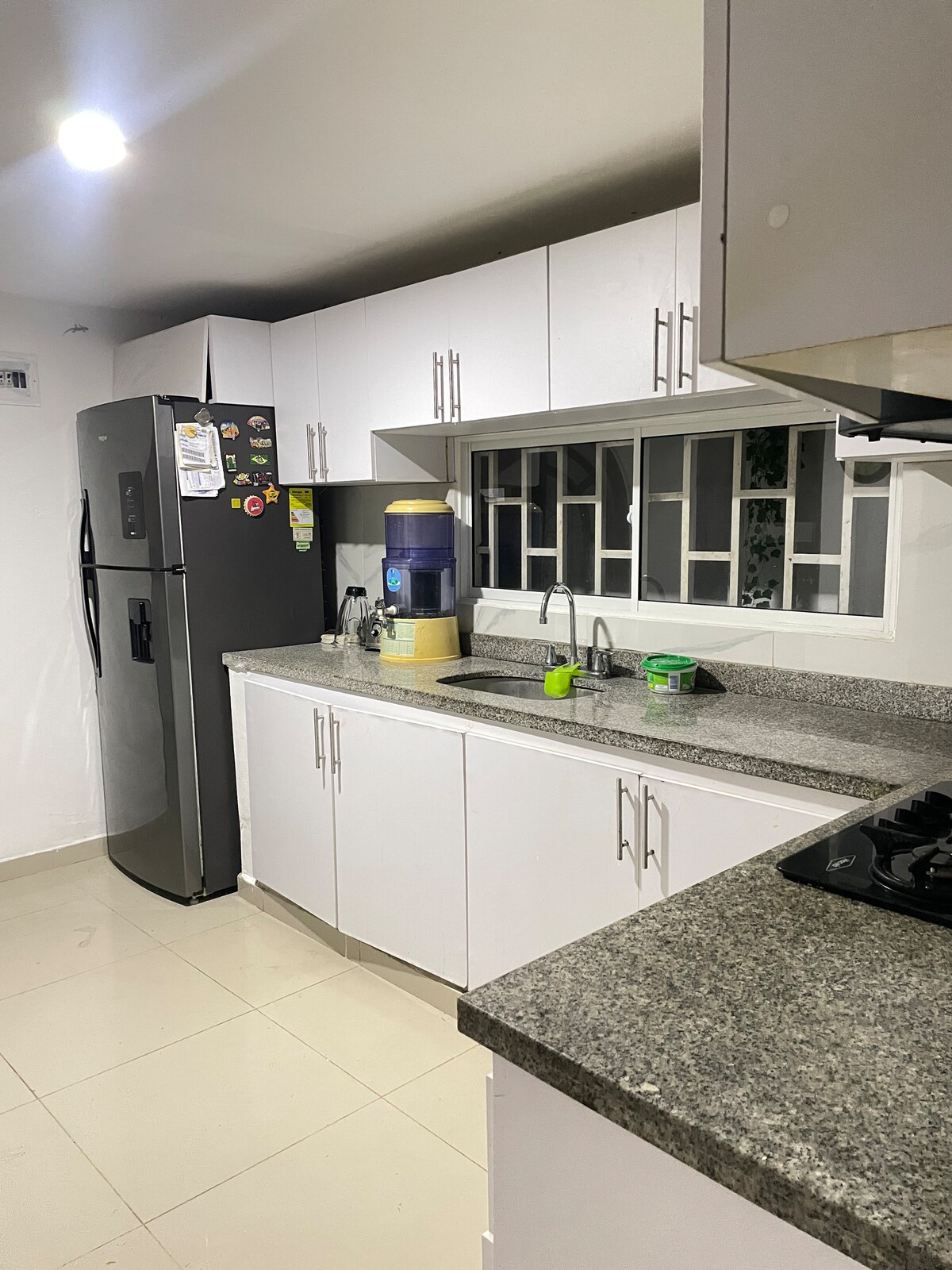 Casa de playa con todas las comodidades, wifi, cocina con horno a gas, horno eléctrico, nevera, aire acondicionado y abanicos en todas las áreas de la casa. Cocina exterior frente al área de piscina, bbq. A 5 minutos de Pradomar y muy cerca a Puerto Colombia, con restaurantes y playas Beach house equipped with all commodities , including; WiFi, kitchen with an oven, freezer, air conditioner and fans in areas of the house. It’s got an exterior kitchen in front of the pool and a bbq as well.